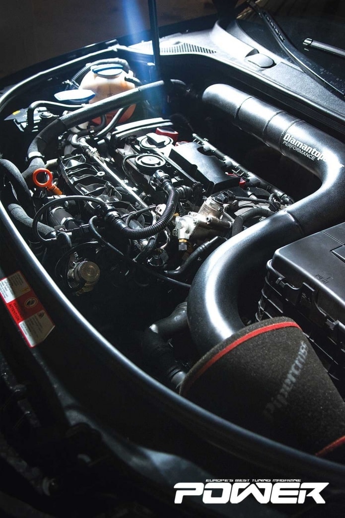 Εντάξει, τα περιέγραψα πολύ απλά στην εισαγωγή του κειμένου. Δεν χρειάζεσαι μόνο ένα turbo από Audi TT-RS και ένα σετ μπιελοπίστονα για να φτάσεις τα 500 άλογα. Θες, πρώτον, λεφτά και μετά μια λίστα από πράγματα. Στο τέλος, όμως, έχεις ένα S3 με turbo της Audi και όχι κάποιον «δεινόσαυρο», έχεις πάνω από 50 κιλά ροπή και όλα αυτά με τρομερή ομοιογένεια. Μοιάζει σαν ένα πολύ δυνατό εργοστασιακό S3. Ο ιδιοκτήτης έφτασε μέχρι το συνεργείο της Diamantopoulos Performance και ύστερα το ανέλαβε ο Παναγιώτης Διαμαντόπουλος. Η επιλογή των aftermarket φαίνεται ψαγμένη και γι’ αυτό και ασχοληθήκαμε με αυτό το S3. Αν θυμάμαι καλά, δεν έχουμε ξαναπαρουσιάσει S3 με τέτοιο turbo, μετατροπή που κάνουν πλέον κατά κόρον οι ψαγμένοι του είδους και γιατί όχι! Η μοναδική πατέντα που πρέπει να γίνει είναι να κοπεί και να τροποποιηθεί η πολλαπλή εξαγωγής καθώς το TT-RS διαθέτει έναν ακόμα κύλινδρο. Με το turbo αυτό έχουν ξεπεράσει τα 500 άλογα σε S3, άρα είμαστε σε καλό δρόμο. Εκτός από το turbo, ο Παναγιώτης τοποθέτησε και πολλαπλασιαστές και μπεκ από Audi RS4, έτσι ώστε ρεύμα και καύσιμα να φτάνουν και να περισσεύουν. Η εργοστασιακή αντλία υψηλής πίεσης αντικαταστάθηκε από μια της Autotech, δοκιμασμένη λύση, δηλαδή. Οι χοντρές αλλαγές όμως δεν έχουν γίνει στα γύρω-γύρω αλλά στο εσωτερικό του μοτέρ. Από κάτω προς τα πάνω, τριμεταλλικά μέταλλα της Callico συνεργάζονται με τις μπιέλες της ZRP και τα πιστόνια είναι της CP. Τα τελευταία φροντίζουν να σκαρφαλώσει η συμπίεση στο 9,5:1, αντί του εργοστασιακού 9,3:1. Πιο πάνω, σφίγγουν την κυλινδροκεφαλή στο μπλοκ τα μπουζόνια της ARP. Εντωμεταξύ, ούτε η κυλινδροκεφαλή είναι νορμάλ. Οι εκκεντροφόροι είναι stock αλλά ελατήρια, retainers και βαλβίδες είναι της Ferrea και φροντίζουν ο κινητήρας να δουλεύει άψογα μέχρι πάνω από τις 7.500rpm. Εξάλλου δεν χρειάζονται και παραπάνω στροφές, μιας και το turbo κάπου λίγο πιο πριν αρχίζει να λαχανιάζει. Ελαφριά επεξεργασία των αυλών από την Diamantopoulos Performance και το μοτόρι είναι έτοιμο να κελαηδήσει.