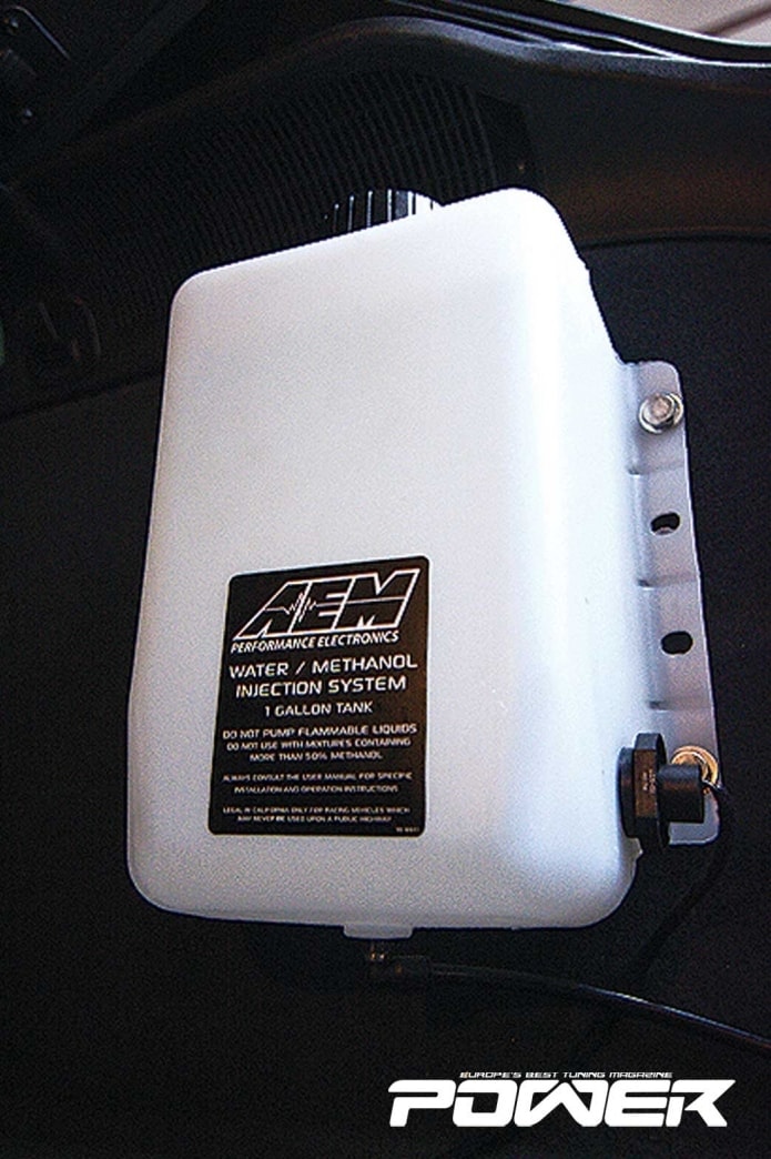Τι λείπει πάλι, ρε μάστορα? Μπόλικα! Το «σκασμένο» turbo θέλει και συμμάχους βλέπεις. Αναφέρομαι στο intercooler της Forge Motorsport, την εξάτμιση της APR, η οποία ξεκινάει με διάμετρο 80mm και στην πορεία γίνεται 76mm, καθώς και το βασικότερο σύστημα που φροντίζει να βγαίνουν τα άλογα ευκολότερα: το water/methanol injection kit της AEM. Ο Κώστας Μαρκόβας κατασκεύασε μια εισαγωγή με διάμετρο 76mm, η οποία στην άκρη της φιλοξενεί μια φιλτροχοάνη της Pipercross. Πάνω σε αυτή την εισαγωγή, δεν θα βρείτε τον MAF sensor. Γιατί? Γιατί η Dyno Exelixis έχει φροντίσει να ρυθμίσει την ECU χωρίς MAF.