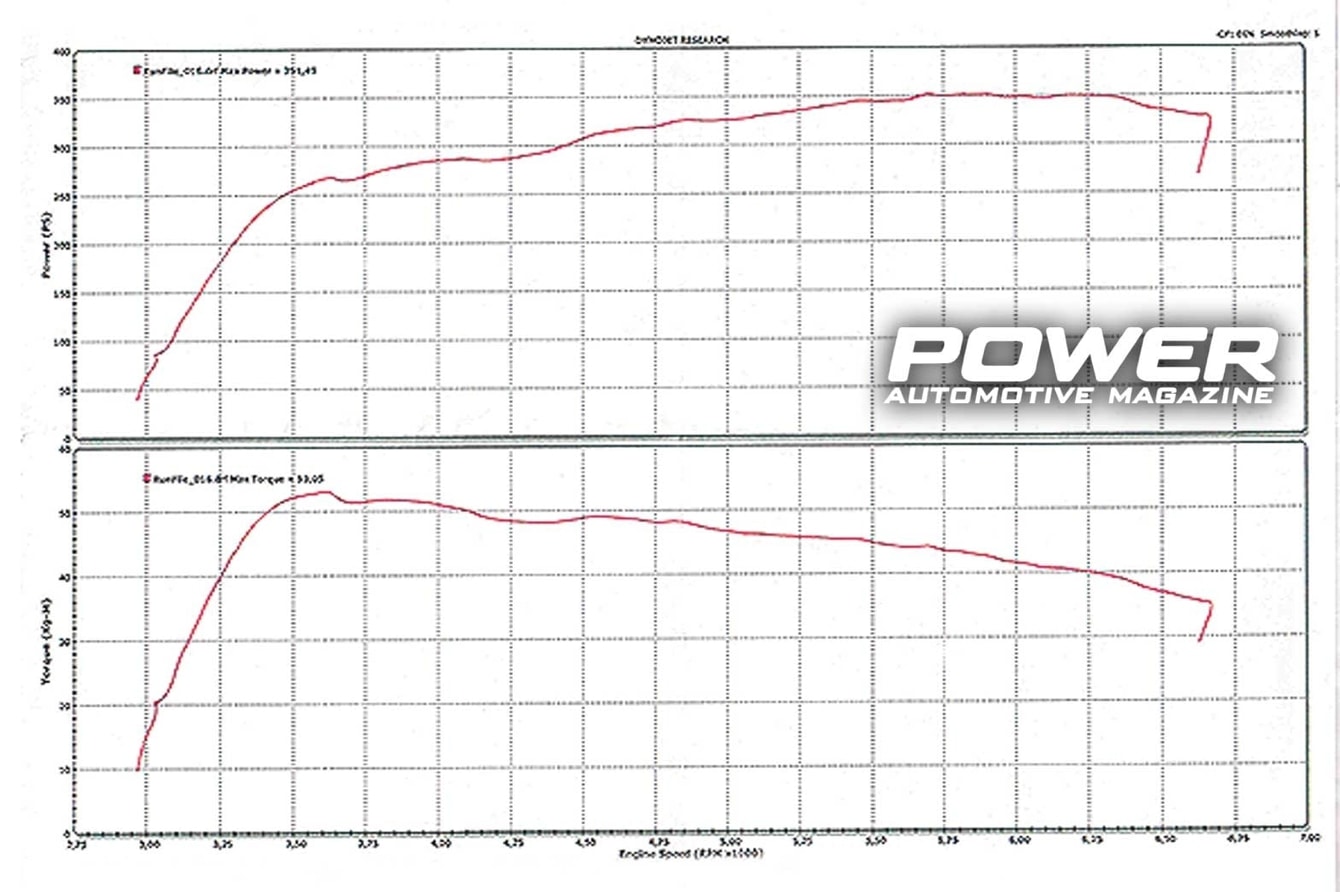 | ΔΙΑΓΡΑΜΜΑ ΔΥΝΑΜΟΜΕΤΡΗΣΗΣ Η δυναμομέτρηση πραγματοποιήθηκε στο δυναμόμετρο Maha LPS3000 της Unlimited Exelixis Μέγιστη ισχύς (Ps/rpm) 502,3/7.485 Μέγιστη ροπή (kgm/rpm) 50,25/6.545 |