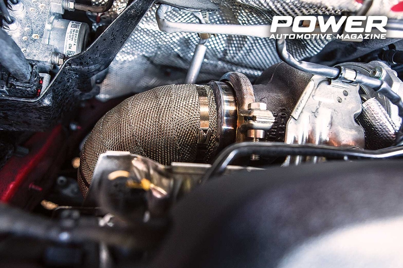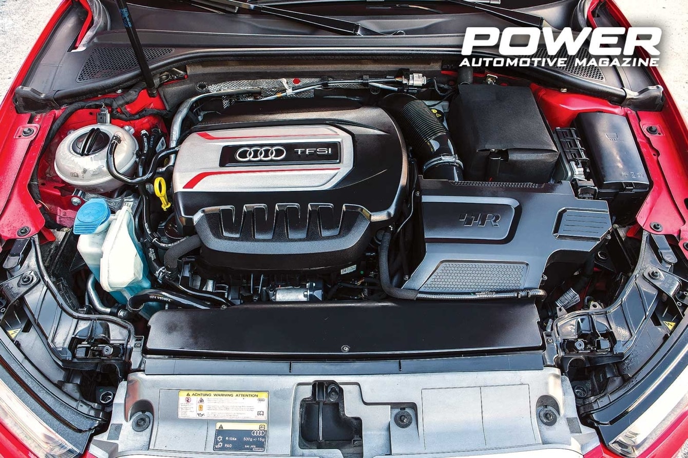 Πέρα από την εμφάνιση, το Audi S3 Sedan δεν διαφέρει σε τίποτα από ένα τρίθυρο S3 8V, χρησιμοποιεί τα ίδια μηχανικά μέρη και φυσικά το γνωστό 2.0 TFSI κινητήρα. Άρα, αν θέλουμε βελτίωση, έχουμε μπροστά μας απλωμένο έναν καλό χάρτη βελτιωτών και πολλές λύσεις. Εδώ, όμως, υπάρχει ένας παράγοντας, που δυσκολεύει λίγο τα πράγματα, αν θέλουμε να παίξουμε με την ECU, τα 8V S3 έχουν την μονάδα Simos 18, η οποία έχει πολύ περισσότερες δικλείδες ασφαλείας και διαφορετικά πρωτόκολλα από τις προηγούμενες εκδόσεις, με αποτέλεσμα ο προγραμματιστής να χρειάζεται περισσότερη δουλειά, προκειμένου να αλλάξει παραμέτρους χαρτογράφησης κτλ. Το πρώτο πράγμα που έκανε μόλις αγόρασε το S3 ο Θοδωρής, ήταν να του βάλει εισαγωγή και remaping στην ECU από την APR. Η εισαγωγή, που επέλεξε, είναι R600 cold air intake της VW Racing, η εισαγωγή της οποίας βρίσκεται στη μάσκα του αυτοκινήτου και ρουφάει περισσότερο αέρα απευθείας από το περιβάλλον. Η εισαγωγή αυτή είναι ικανή να παρέχει αέρα μέχρι και 600Ps, ενώ μπορεί να τοποθετηθεί, χωρίς ιδιαίτερο κόπο, στη θέση της εργοστασιακής εισαγωγής. Όπως ήταν αναμενόμενο αυτή ήταν μόνο η αρχή, στη συνέχεια ο Θοδωρής άλλαξε και άλλα πράγματα, όπως για παράδειγμα το σωλήνα, που καταλήγει στην εισαγωγή του turbo, με τον αντίστοιχο της VWRacing και τέλος, άλλαξε όλο το σύστημα εξαγωγής με το αντίστοιχο της BCSPowerslave, που έχει διάμετρο 76mm. Η εξαγωγή αποτελείται από downpipe, μεταλλικό καταλύτη, μεσαίο καζανάκι και καταλήγει σε ένα τελικό με δύο διπλές απολήξεις. Μάλιστα, υπάρχει και ένα κλαπέτο, που ανοίγει, όταν πατάμε τέρμα το γκάζι και αλλάζει εντελώς τον ήχο του αυτοκινήτου. Μετά την τοποθέτηση της εξάτμισης, ο Θοδωρής πήγε ξανά στην APR, όπου πέρασαν το τελευταίο upgrade του stage 2 και πλέον ο κινητήρας αποδίδει 352whp.
