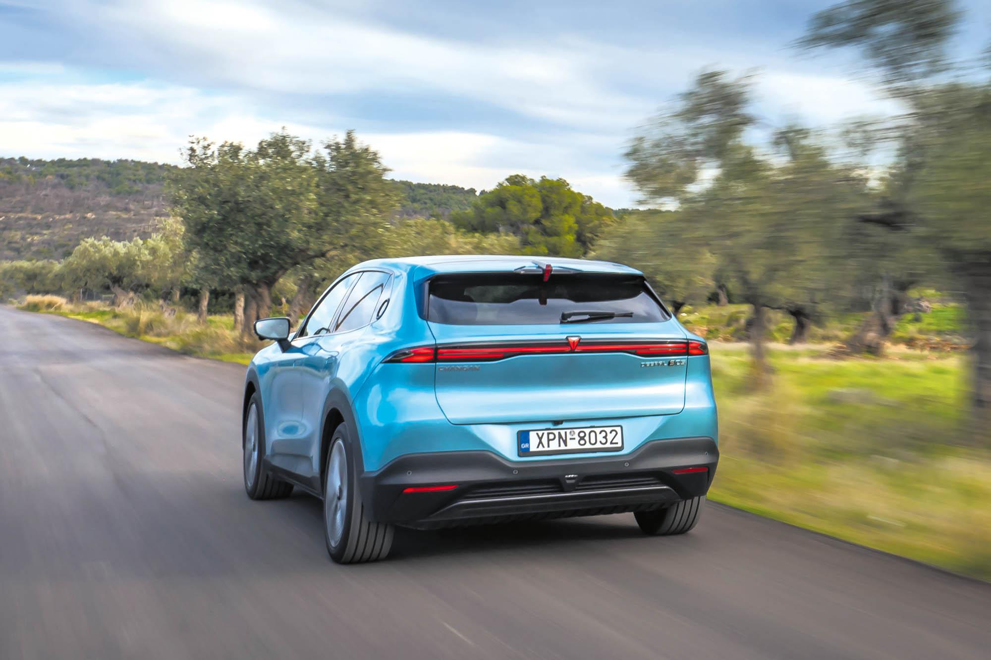 Η ισχύς του ηλεκτροκινητήρα αποδίδεται με ιδιαίτερα γραμμικό τρόπο με πολύ καλή αμεσότητα ειδικά αν έχεις επιλέξει το πρόγραμμα Sport (από τα 3 διαθέσιμα και 1 επιπλέον Custom). Επιταχύνει με σβέλτο ρυθμό και δύσκολα κάποιος θα ζητήσει το κάτι παραπάνω δεδομένου ότι μιλάμε για ένα SUV 1.940kg. Το οποίο SUV ξεφεύγει σε οδηγικό ταπεραμέντο από αυτά που έχουμε συνηθίσει από τους Κινέζους. Η συντριπτική πλειοψηφία των ηλεκτρικών «ΤσαϊνοSUV» προτάσσει άνεση και αδιάφορη οδηγική συμπεριφορά. Το Deepal S05 δεν ακολουθεί τη νόρμα που θέλει την «απλή» μεταφορά επιβατών, αντ’ αυτού δεν λέει όχι στο να κινηθείς μαζί του με γρήγορο τέμπο. Η ανάρτηση έχει τον δοκιμασμένο συνδυασμό με γόνατα McPherson εμπρός και multilink άξονα πίσω, η ρύθμισή της όμως είναι ιδανική τόσο από άποψη damping όσο και από διαχείριση κλίσεων του αμαξώματος. Η ποιότητα κύλισης είναι εξαιρετική, ενώ η σωστή επιλογή των Continental PremiumContactC σε πληθωρική διάσταση 245/45R20 χαρίζει κράτημα υψηλού επιπέδου και απροσδόκητα σπορτίφ οδηγική αίσθηση. Σε ίδιο κλίμα και το τιμόνι του που είναι λίγο πιο βαρύ από αυτά που μας έχει συνηθίσει ο ανταγωνισμός, είναι αρκετά άμεσο και δεν είναι φειδωλό στις πληροφορίες που μεταφέρει στον οδηγό. Τα φρένα του είναι δυνατά, όμως θα πρέπει να επιμείνεις λίγο περισσότερο στο μεσαίο πεντάλ αφού το επίπεδο του regen δεν είναι ιδιαίτερα ισχυρό, ενώ δεν υπάρχει one-pedal drive. Ακόμα και έτσι δεν θα δυσκολευτείς να διατηρήσεις την κατανάλωση ενέργειας εντός πόλεως στις 15-16kWh/100km, ενώ στον αυτοκινητόδρομο κυμαίνεται μεταξύ 19-20kWh/100km. Σε κάθε περίπτωση μία πραγματική αυτονομία της τάξεως των 400-420km είναι απόλυτα ρεαλιστική.