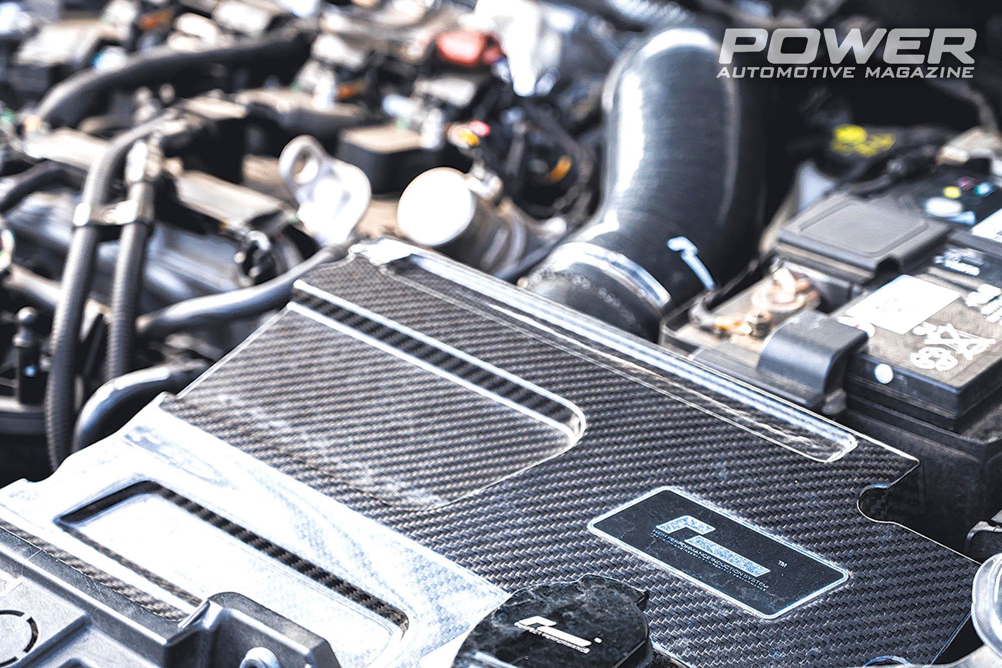Ξεκινάμε απ' το μεγάλο κιτ carbon εισαγωγής R600 EVO της Racingline. Είναι μια φαρδιά “σκούπα” που συνδέεται σε ένα χορταστικών διαστάσεων φιλτροκούτι. Μέσα του έχει τη χοάνη με το “βαμβακερό” φίλτρο που είναι “Fit and Forget”, ενώ αν θες, μπορείς να το παραγγείλεις με το Trifoam φίλτρο για να κερδίσεις και το παραμικρό άλογο. Επόμενο είναι το High Flow Turbo Ιnlet της Racingline, βοηθάει στην εισπνοή του turbo καθώς είναι κατασκευασμένο από αλουμίνιο υψηλής ποιότητας και έτσι έχει λεπτότερα τοιχώματα (10mm φαρδύτερη εσωτερική διάμετρος σε σχέση με το εργοστασιακό!). Αφού θέλουμε παραπάνω άλογα σημαίνει πως θα έχουμε μεγαλύτερες πιέσεις, άρα καυτός αέρας απ’ τον συμπιεστή. Οπότε το BigPack kit intercooler της Do88 (75% μεγαλύτερος εσωτερικός όγκος) ήρθε για να ρίξει την θερμοκρασία χαμηλότερα απ’ το εργοστασιακό και κάπου πριν την πεταλούδα τοποθετήθηκε η σκάστρα DV+ Evo 4 της GFB. Στην εξαγωγή υπάρχει το Large Bore downpipe της Millteksport (η διάμετρος ξεκινά 90mm και καταλήγει σε 84mm), με κατάργηση των φίλτρων OPF, ενώ μετά συνεχίζει η 76άρα εξάτμιση της Remus, με τελικά διαμέτρου 102mm. Αυτά είναι όλα και όλα από hardware!