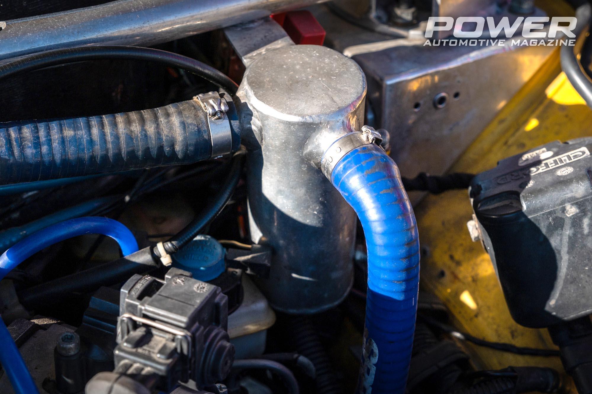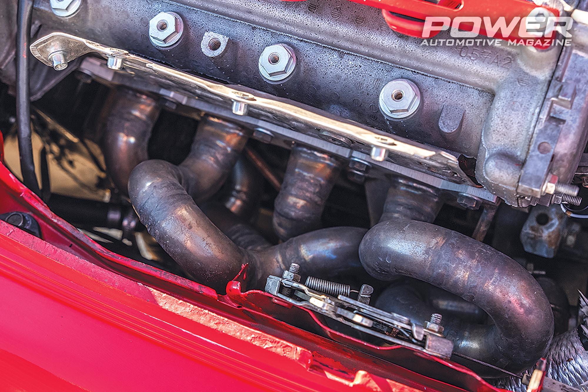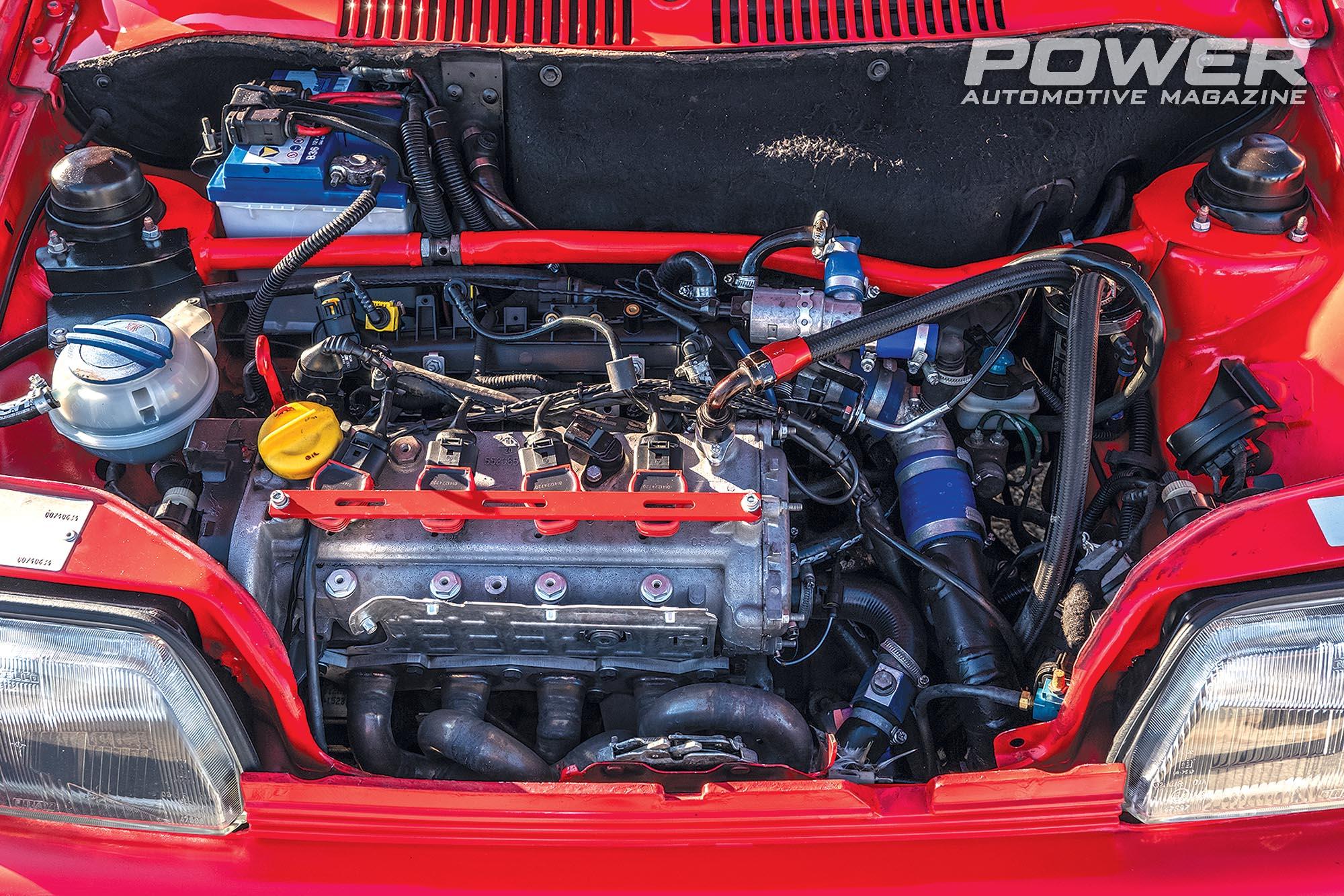 Το “Sei” είναι πιο καλό παιδί, πιο συνεσταλμένο. Πήρε δώρο το μοτεράκι του, το ίδιο με τον κόκκινο μπουκαδόρο από πάνω και ήταν ευχαριστημένο. Ούτε τουρμπίνα άλλαξε, ούτε πολλά πράγματα. Τα απαραίτητα που χρειάστηκαν για την μετατροπή, όπως μια καινούργια χειροποίητη εξάτμιση decat 63,5mm, μια πεταλούδα από Fiat Coupe 2.0lt 20V και έναν άγραφο εγκέφαλο Link Monsoon G4X για να μπορέσουν να λειτουργήσουν αρμονικά τα εξαρτήματα των διαφορετικών γενεών. Η καλωδίωση για να γίνει αυτό, καθώς και ο προγραμματισμός του άγραφου εγκεφάλου έγινε από τον -μετρ της Link-, Τάκη Γεωργιάδη. Τα μπεκ και η αντλία βενζίνης είναι από το αυτοκίνητο που ήθελαν να μοιάσουν τότε αυτά τα δύο όταν μεγαλώσουν, που δεν είναι άλλο από το Fiat Punto GT, μόνο που στην πορεία, τελικά το ξεπέρασαν, γιατί, όπως και να το κάνουμε, ο 1.4T-Jet δεν συγκρίνεται με εκείνη την οχταβάλβιδη «μπουργάνα» που είχε το GT, με την εισαγωγή και την εξαγωγή στην ίδια πλευρά. Το μόνο που το έσωζε εκείνο το μοτέρ ήταν πως ήταν πολύ υπερτετράγωνο και έτσι στροφάριζε ψηλά παρά τις 8 βαλβίδες και φυσικά ήταν «γομάρι» από μπλοκ και στρόφαλο, αφού για να το σπάσεις, ήθελε να είσαι μεγάλο ταλέντο. Το ψυγείο νερού είναι κατασκευής Hercules Parts, από υψηλής ποιότητας αλουμίνιο και αυτό να σημειωθεί γιατί τελευταία κυκλοφορούν ψυγεία και intercoolers από Chinesium τα οποία δεν κάνουν ούτε για καλοριφέρ σε πολυκατοικία του '50.