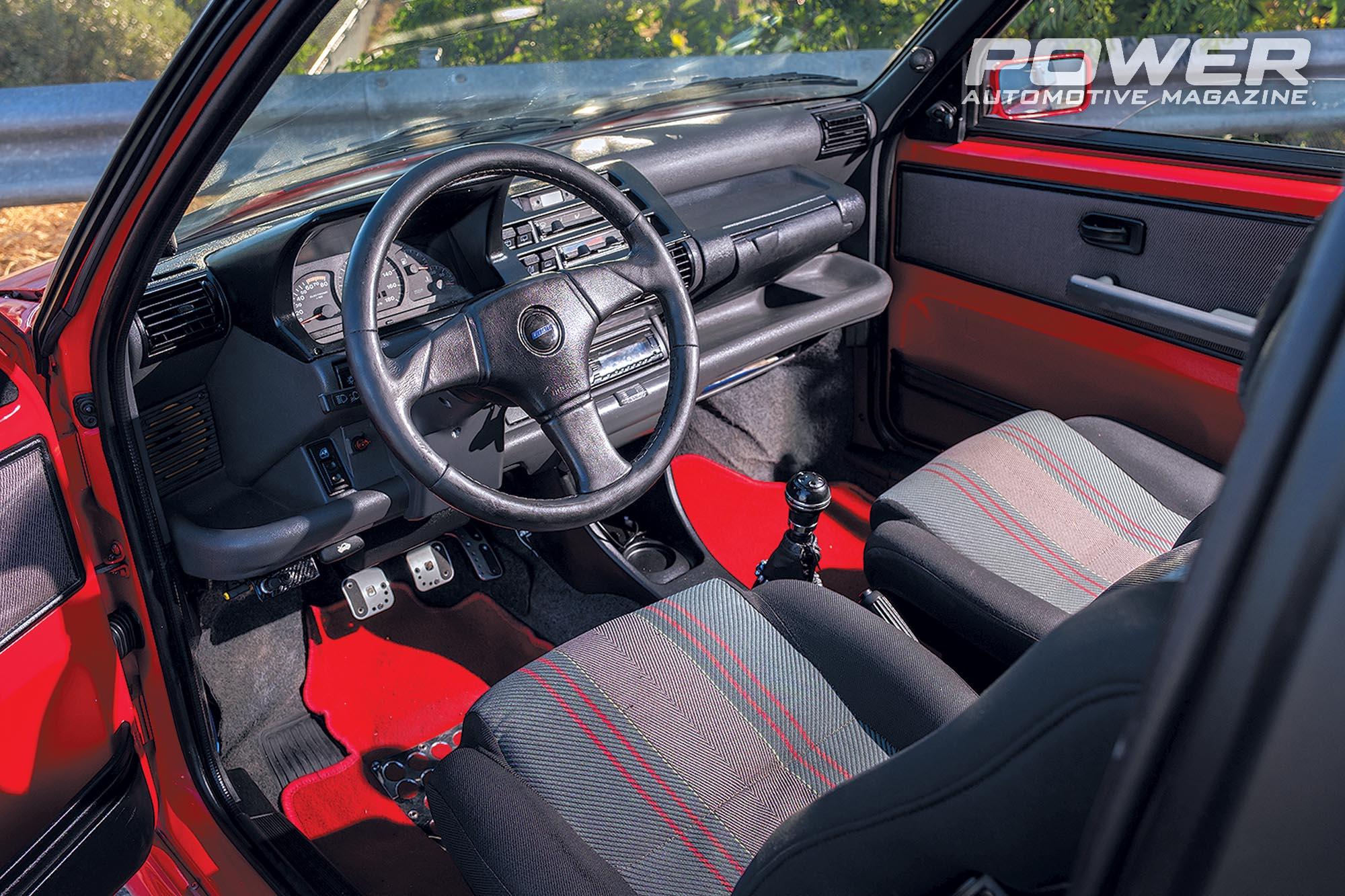 Το στήσιμό του είναι και εδώ προσεγμένο, με μπάρα θόλων, ενισχύσεις στη μετόπη, αμορτισέρ Bilstein B6 με ελατήρια της H&R που το χαμηλώνουν 3,5cm και Silent Blocks της Powerflex. Τα φρένα του είναι και αυτά από Fiat Punto GT, εμπρός και πίσω. Λιγότερο πασπαρτού από τον κόκκινο πρόγονό του και στο αγαπημένο μου χρώμα, αυτό το κίτρινο των Fiat της δεκαετίας του 90, το πιο όμορφο χρώμα στον κόσμο. (Ναι, είχα κίτρινο Punto GT ρε... τρέχει τίποτα;).