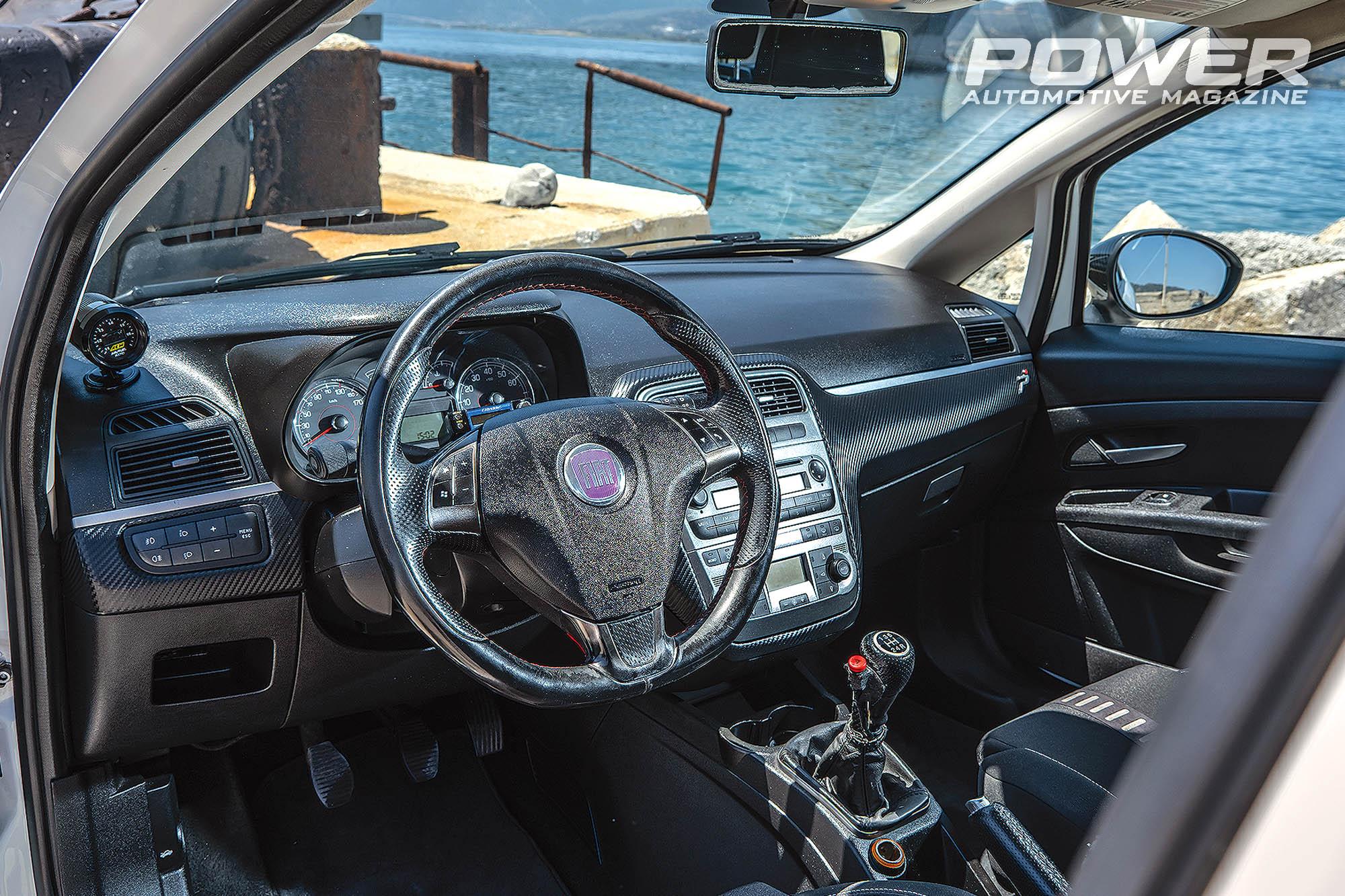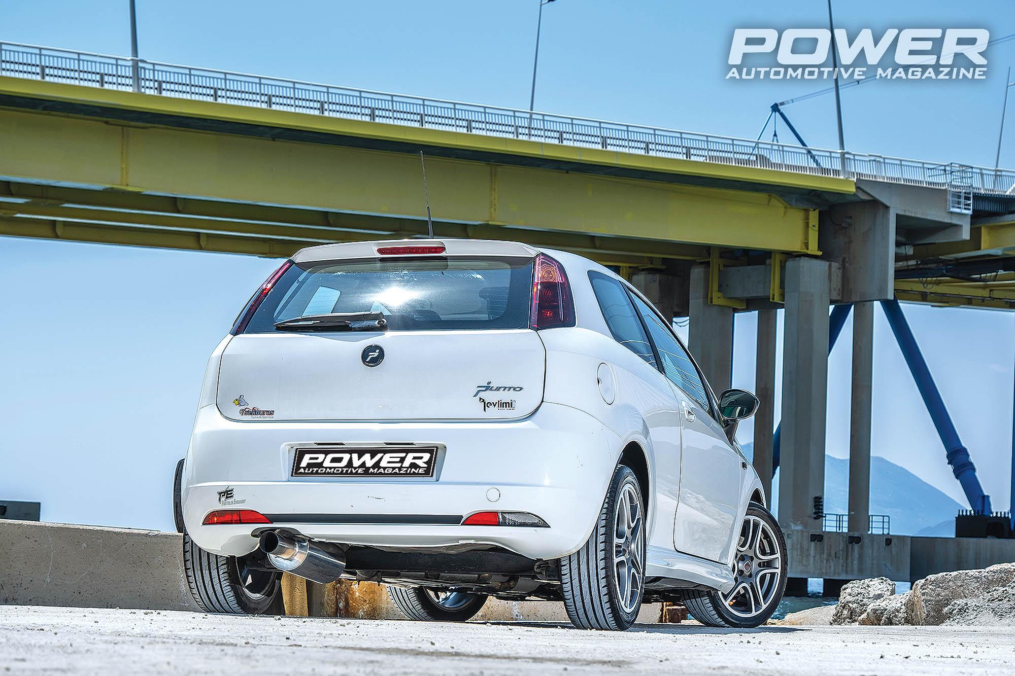Σειρά είχε το χταπόδι, που κατασκευάστηκε από την Pantelis Exhaust, το οποίο είναι αρκετά κοντό για να πετύχουν περισσότερη ροπή στις μεσαίες rpm. Ο Ευγένιος πριν προχωρήσει στις παραπάνω επιλογές το έψαξε αρκετά. Επίσης, κατά τα λεγόμενα του και την εμπειρία του, το μεγαλύτερο πρόβλημα γι’ αυτό το μοτέρ είναι η σχεδίαση του πιστονιού, που είναι λεπτό στο τελείωμα της κορώνας και στην περίπτωση που ο κινητήρας εμφανίσει πειράκια, ξεκολλάνε κομμάτια της κεφαλής του εμβόλου καταστρέφοντας τον κύλινδρο. Για να αποφύγει την παραπάνω ζημιά, ο Ευγένιος φρόντισε ο κινητήρας να αποδεσμεύει όσο πιο γρήγορα γίνεται τα καυσαέριά του, αφού με την ψαγμένη ροϊκή στους αυλούς, τη μεγαλύτερη φτερωτή στο turbo και τα πιο επιθετικά χαρακτηριστικά των εκκεντροφόρων, αύξησε την ταχύτητα αποβολής των καυσαερίων, πετυχαίνοντας χαμηλότερες θερμοκρασίες εξαγωγής. Σίγουρα θα μπορούσε να έχει λίγο μεγαλύτερη ισχύ με διαφορετικό χταπόδι και μεγαλύτερο turbo, όμως ήθελε να διατηρήσει πάση θυσία την εργοστασιακή αξιοπιστία και τη χρηστικότητα στην καθημερινή χρήση. Πολλή δουλειά έχει γίνει και στον προγραμματισμό που έχει αναλάβει η Revlimit, με τον Φώτη Λεκατσά να έχει προσθέσει πολλές λειτουργίες στην εργοστασιακή ECU του Punto, όπως Launch Control που ενεργοποιείται με κουμπί στον επιλογέα ταχυτήτων, Flat-Gear-shift, Anti-Lag, Rev-Cutter, ενώ και ο ίδιος ο Ευγένιος έβαλε το χεράκι του, αφού, σύμφωνα με δική του προτροπή, ο Φώτης μείωσε κατά 2ο την προπορεία ανάφλεξης σε όλο το φάσμα rpm, θυσιάζοντας μερικούς ίππους από τον T-Jet. Το Punto μετά τον προγραμματισμό απέδωσε στο Dynojet της Revlimit στην Πάτρα 301Ps, με 35,3kgm ροπής στις 5.600rpm.