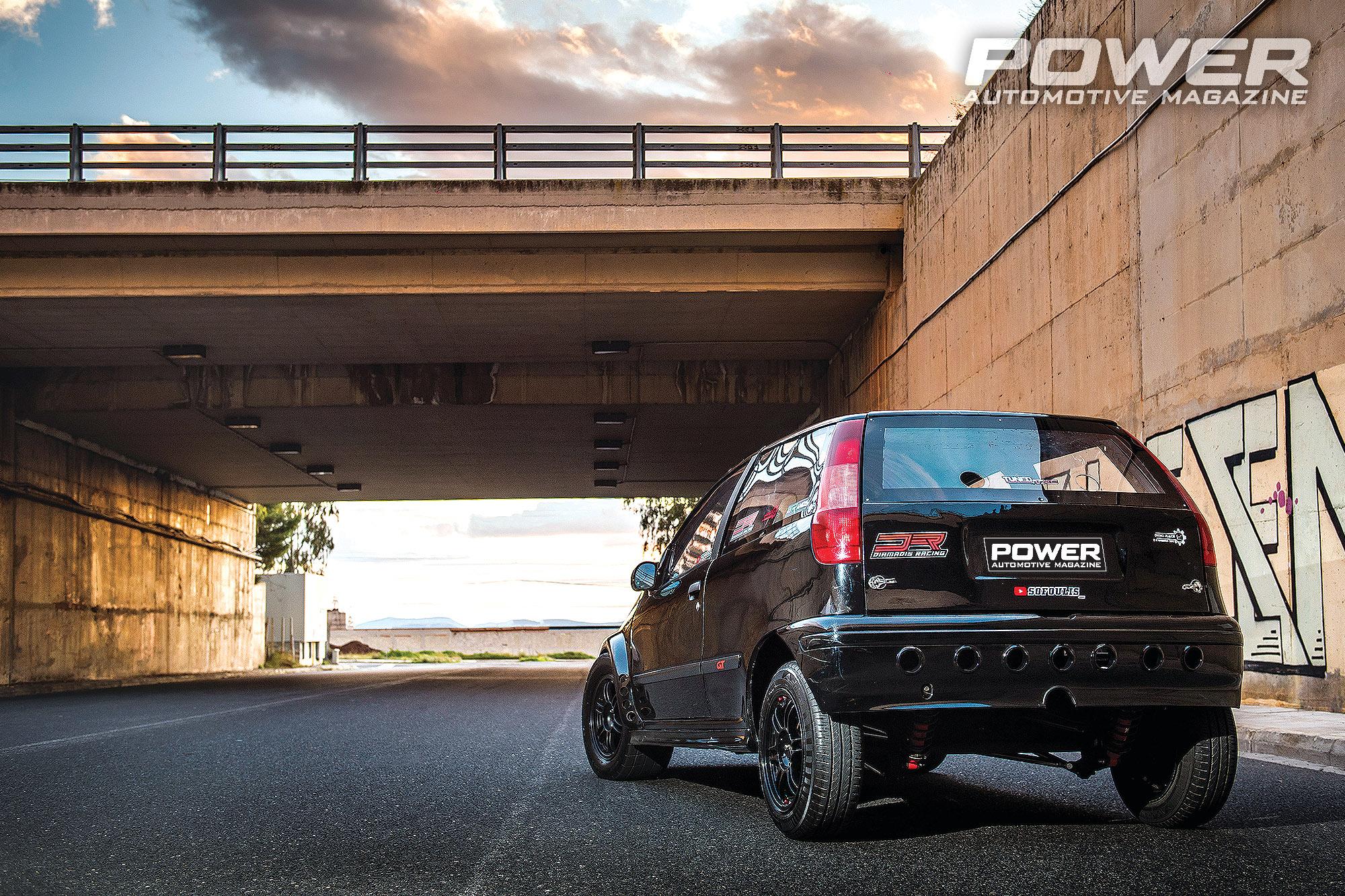 Κάποια λίγα που έχουν μείνει, όπως αυτό εδώ το μαύρο του Γιώργου, κρατάνε ακόμα τη σημαία ψηλά. Βέβαια, πλέον δεν τους φτάνουν τα 180 ή τα 250Ps για να το καταφέρουν, ούτε τα 1.400 ή 1.600 κυβικά. Για να είναι ακόμα ο φόβος και ο τρόμος της ασφάλτου, χρειάζονται πιο δραστικά μέτρα, σαν αυτά που έχει πάρει και αυτό εδώ. Πρώτο και κυριότερο είναι ότι έχει δανειστεί το μοτέρ από την αρχηγό της ιταλικής αγέλης του τότε, την “big mama” Lancia Delta Integrale. Από εκεί και πέρα, η συνταγή για κάθε κοντράδικο αυτοκίνητο είναι απλή. Όσο το δυνατόν περισσότερα άλογα, όσο το δυνατόν χαμηλότερο βάρος και όσο το δυνατό περισσότερη πρόσφυση. Δεν χρειάζεται κάτι άλλο και μπορώ να πω ότι το Punto του Γιώργου είναι αρκετά επιτυχημένο σε αυτό. Ειδικά όταν ένα αυτοκίνητο δεν είναι καθημερινό - βολτάδικο και δεν χρειάζεται να πληροί καμία άλλη προϋπόθεση, τότε τα πράγματα απλουστεύονται ακόμα περισσότερο.