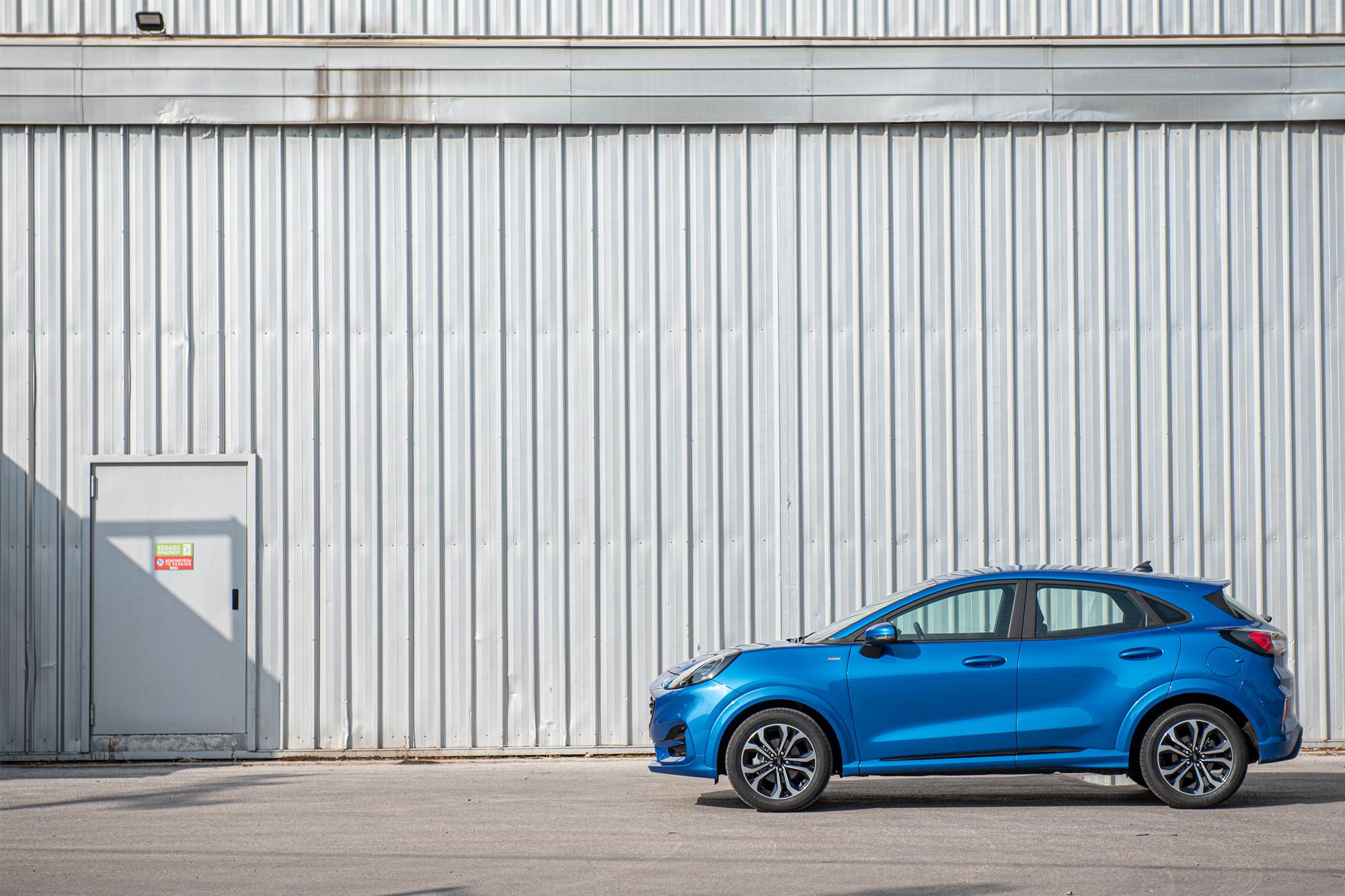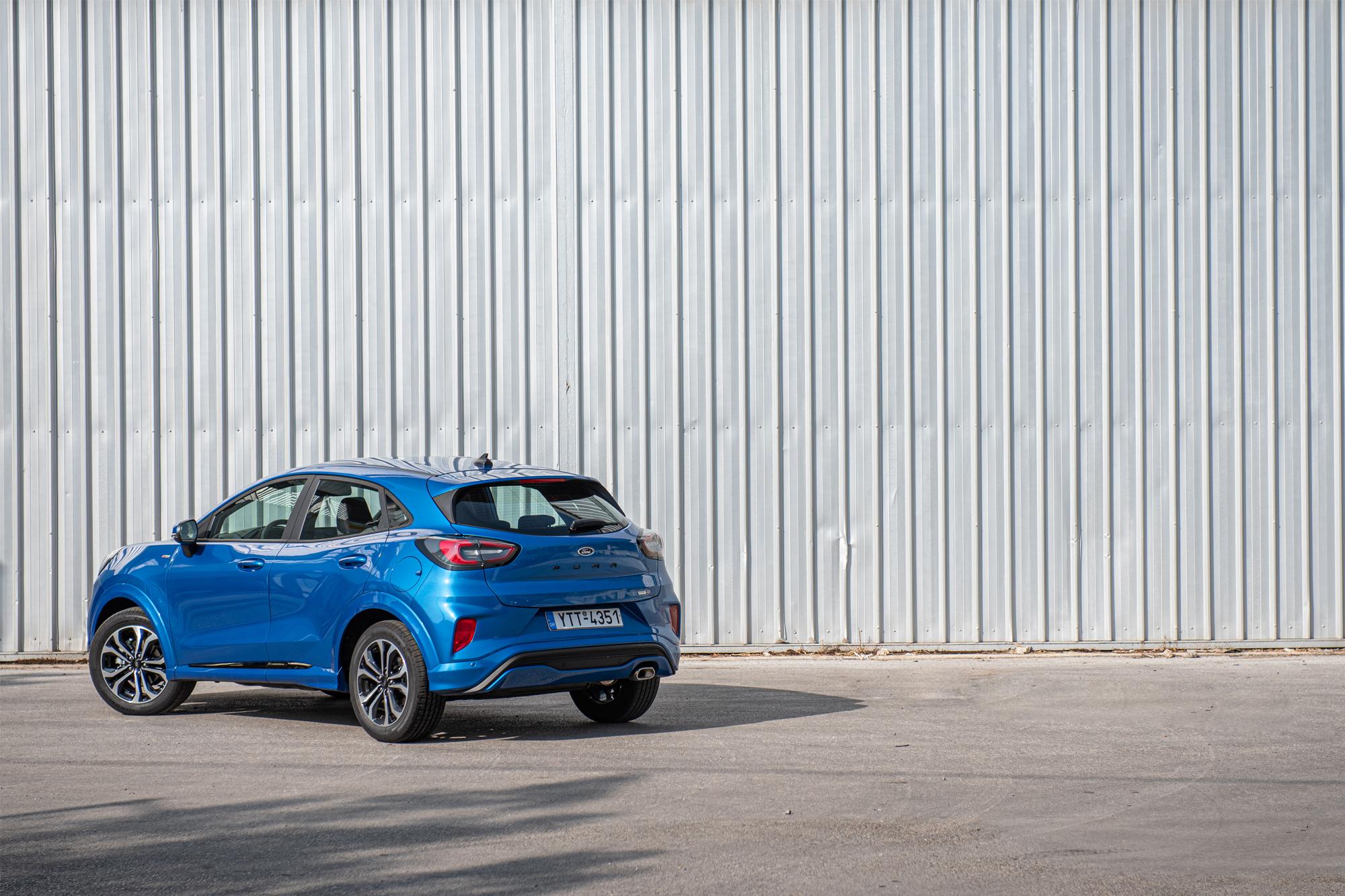 Η έκδοση ST-Line το εντάσσει στη μεγάλη οικογένεια των sport μοντέλων της Ford που έχουν ως στόχο να προσφέρουν πιο σπορ χαρακτηριστικά και σε εμφάνιση και σε οδική συμπεριφορά, εμπνευσμένα πάντα από τις κανονικές εκδόσεις ST, τις οποίες επιμελείται το τμήμα Ford Performance. Το όμορφο και τονισμένο αμάξωμα, με τις έντονες καμπύλες και τα κουπέ στοιχεία, κολακεύεται ακόμα περισσότερο από το κοστούμι ST-Line, με τη μεγάλη μπροστινή μάσκα να είναι σε γυαλιστερή μαύρη απόχρωση και τους προφυλακτήρες να διαθέτουν πιο αεροδυναμική σχεδίαση. Οι ζάντες των 17 ιντσών ξεχωρίζουν, με τα πίσω σκουρόχρωμα -LED- φανάρια και τα πίσω κρύσταλλα φιμέ να αποτελούν προνόμιο της συγκεκριμένης έκδοσης. Ο σκοπός των σχεδιαστών ήταν να δείχνει το Puma ST-Line πιο σπορ από τις εκδόσεις Titanium, κάτι που αναμφίβολα καταφέρνει, χωρίς παράλληλα να γίνεται υπερβολικό. Είναι κατά γενική ομολογία ένα από τα πιο ενδιαφέροντα σχήματα της κατηγορίας B-SUV (μαζί με τα Renault Captur και Nissan Juke), διαθέτει αποδοτικά κινητήρια σύνολα που με την βοήθεια του ήπιου υβριδικού συστήματος έχουν αποδειχθεί ιδιαίτερα οικονομικά και κάθεται στο θρόνο του κορυφαίου οδηγικά μικρού SUV.
