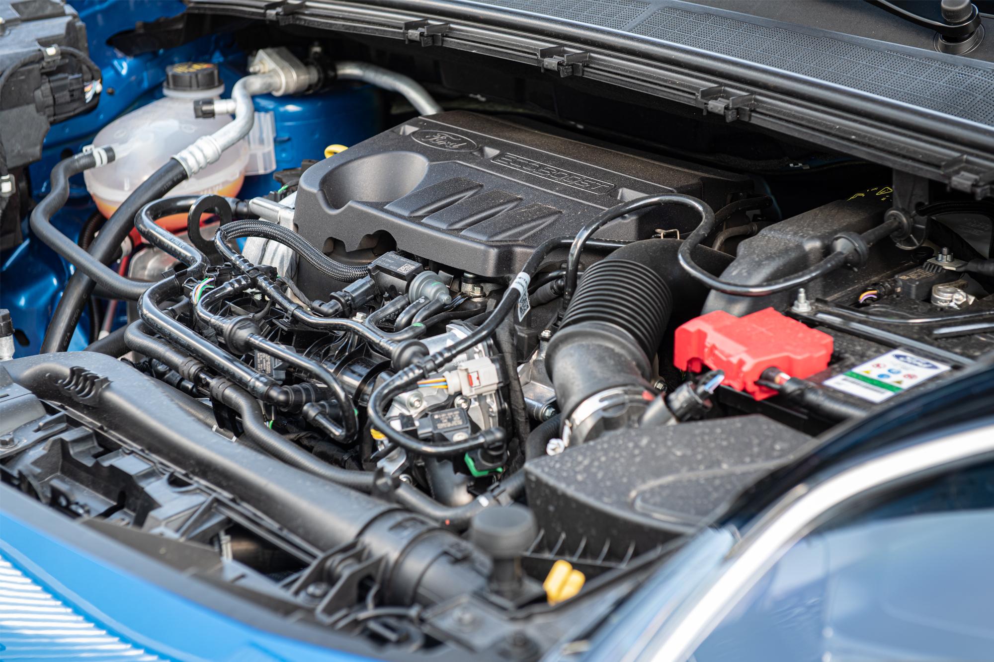 Υβριδικό και γρήγορο! Ο τρικύλινδρος 1.0EcoBoost χρησιμοποιεί όλες τις νέες τεχνολογίες της Ford για μείωση των τριβών και αύξησης της απόδοσης. Οι μηχανικοί της Ford έχουν χρησιμοποιήσει ένα νέο turbo χαμηλής τριβής για βελτιωμένη ευστροφία και μειωμένο turbo lag. Αποτελεί τον πρώτο κινητήρα της Ford που διαθέτει σύστημα απενεργοποίησης του ενός κυλίνδρου, όταν οι απαιτήσεις σε ισχύ είναι χαμηλές, συνεισφέροντας στην οικονομία καυσίμου του μοντέλου. Στην έκδοση που δοκιμάζουμε, χρησιμοποιεί ένα υβριδικό σύστημα των 48V και ο 1.0EcoBoost αποδίδει 125Ps στις 6.000rpm και τρεις διαφορετικές τιμές ροπής. Η αρχική τιμή είναι στα 17,3kgm και τα αποδίδει από τις 1.400rpm μέχρι τις 4.500rpm, η οποία όμως στη λειτουργία overboost μπορεί να φτάσει στα 20,3kgm στις 1.750rpm και στα 21,4kgm στις 1.750rpm χάρη στο e-assist από τον ηλεκτροκινητήρα. Το ηλεκτρικό σύστημα του Ford Puma περιλαμβάνει έναν ηλεκτροκινητήρα 11,5kW που παίζει τον ρόλο της μίζας, αλλά και της γεννήτριας που αναλαμβάνει να φορτίσει την μπαταρία 48V ιόντων λιθίου (Li-Ion) χωρητικότητας 10Ah, η οποία διαθέτει ξεχωριστό σύστημα ψύξης. Από τη στιγμή που σβήσει ο θερμικός κινητήρας, μέσα σε 300 χιλιοστά του δευτερολέπτου ο ηλεκτροκινητήρας αναλαμβάνει να τον εκκινήσει ξανά.