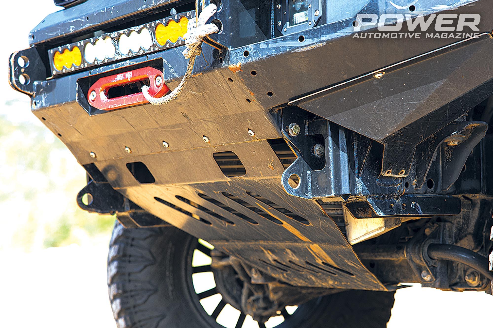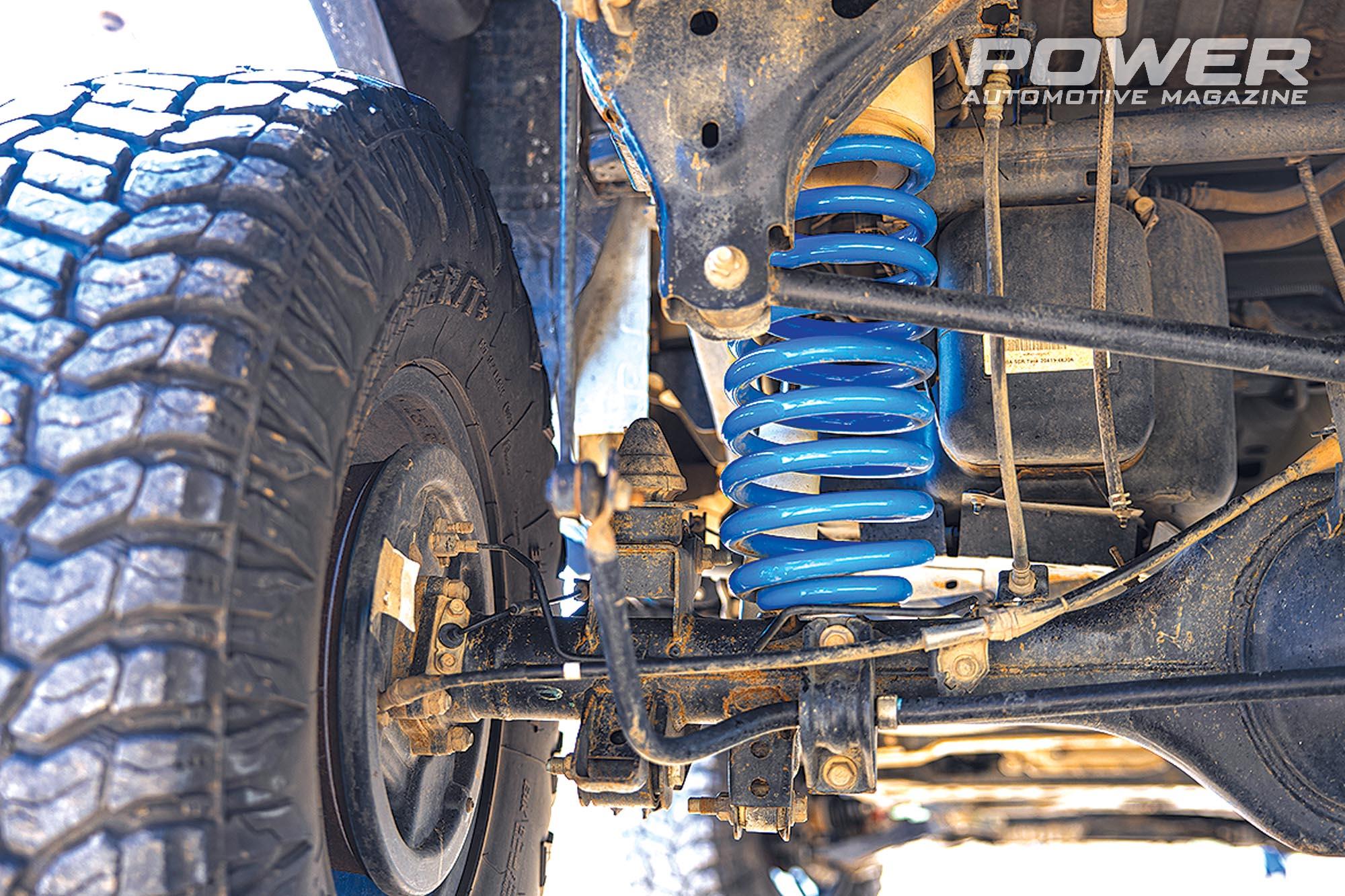Έχει και αυτόματα ηλεκτρικά σκαλοπάτια της Conqueror που αναδιπλώνονται όταν ανοίγουν και κλείνουν οι πόρτες. Ο εργάτης της Kangaroo με 13.000lbs και τηλεχειρισμό είναι εκεί για να το βγάλει (αυτό ή και κάποιο άλλο) από την δύσκολη θέση, την οποία δεν μπορώ να φανταστώ, εκτός αν το χώσεις σε καμία παραλία με μαλακή άμμο, όπως είχα κολλήσει εγώ σαν βλάκας πέρσι το καλοκαίρι με το δημοσιογραφικό Raptor και το βγάλαμε με τρακτέρ. Σημειώστε πως τα αγροτικά είναι βαριά και σκάβουν την άμμο, να μην πληρώνετε κι εσείς πενηντάρικα στον κύριο Eddie τον Αλβανό να σας τραβήξει. Βέβαια το “δικό μου” δεν είχε τέτοια λάστιχα, αλλά ακόμα και με τα Radar Renegade των 37in που φοράει αυτό, αν ακουμπήσει η κοιλιά του κάτω και θαφτούν οι τροχοί και οι άξονες στην άμμο, τέλος, δεν πάει πουθενά. Η δική του η κοιλιά βέβαια απέχει πολύ από το έδαφος, με το body lift kit και την ψηλότερη ανάρτηση με αμορτισέρ Koni και ελατήρια Mad εμπρός/αμορτισέρ Pro Comb 9000 με ελατήρια Mad πίσω, στα οποία έχει επίσης τοποθετηθεί lift kit και στους δύο άξονες.