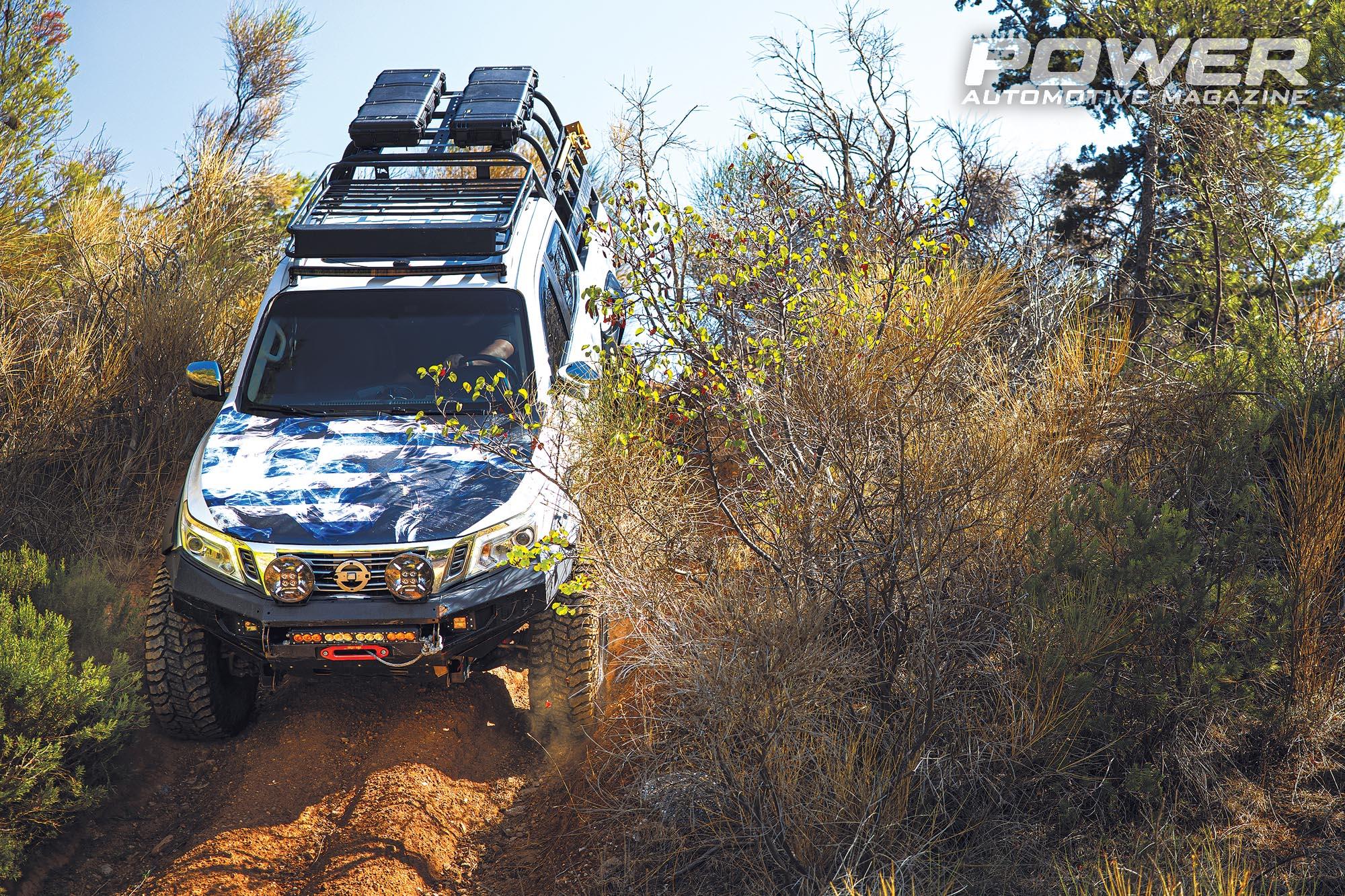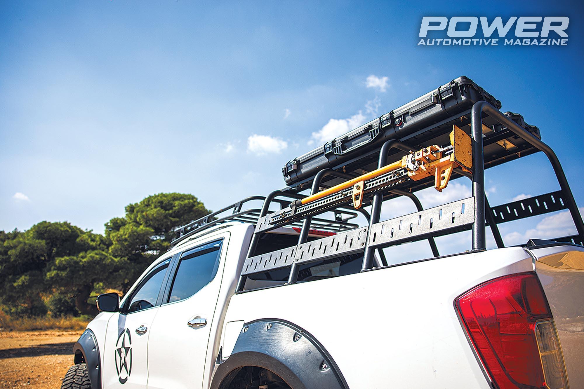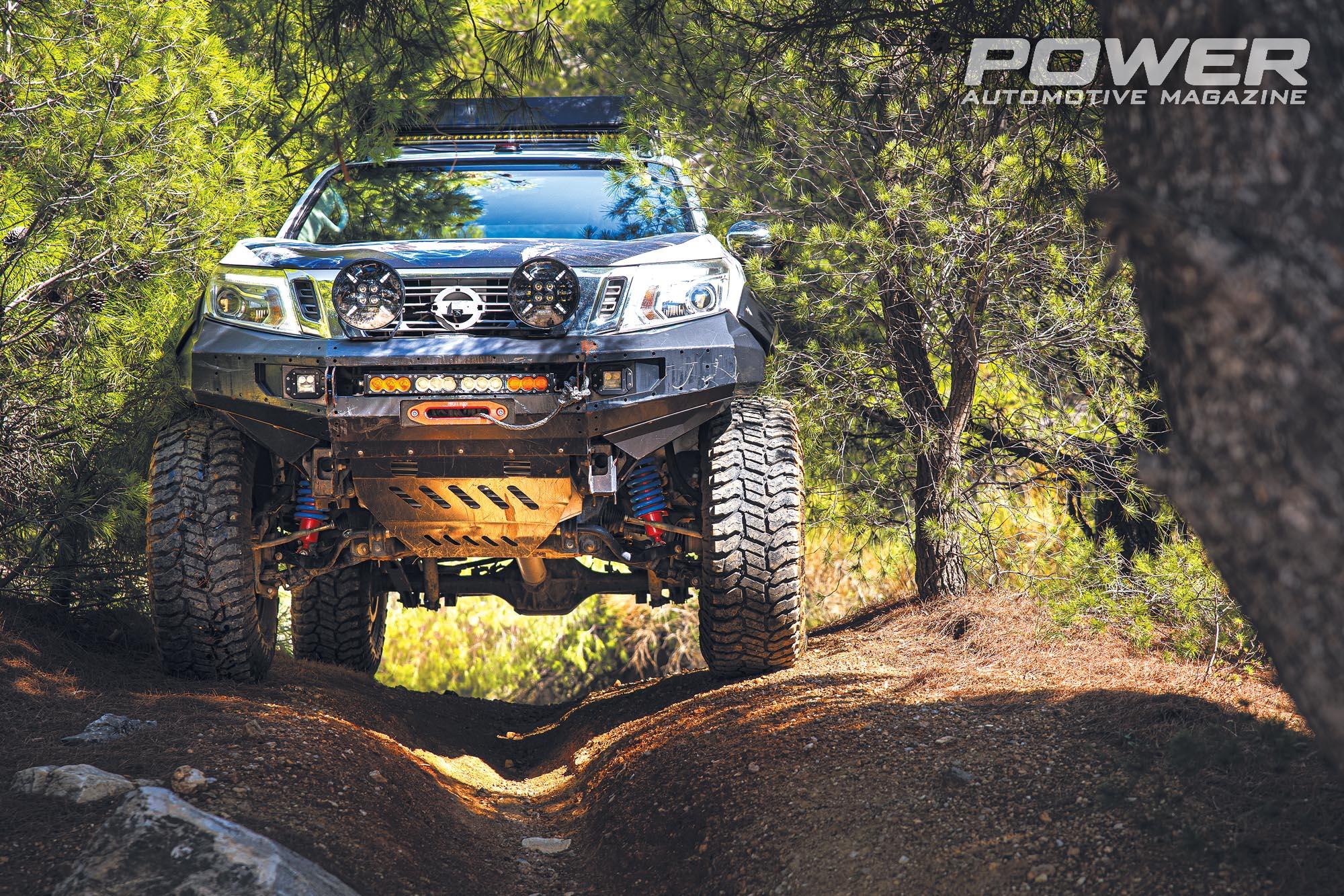 Το Navara του Αλέξανδρου είναι λιγότερο μπαλαντέρ και περισσότερο εστιασμένο στην εκτός δρόμου χρήση και την σκληρή εργασία. Είναι το ψηλότερο και το πιο «πολεμικό» Navara που έχω δει, έτοιμο να περάσει ακόμα και από εκεί που δεν υπάρχει καν δρόμος, καταπατώντας στο πέρασμά του θάμνους, κορμούς, κλαδιά και ό,τι βρεθεί μπροστά του. Με τον μεταλλικό προφυλακτήρα εμπρός και την ποδιά προστασίας της MANx4, πρώτα ισιώνει τον τόπο σαν γκρέιντερ και μετά ακολουθούν οι τεράστιοι τροχοί του των 37in να δώσουν την χαριστική βολή. Το Raptor το λυπάσαι να το περάσεις μέσα από κλαδιά, έτσι σαν στολίδι που το έχει ο Ηλίας, αλλά αυτό εδώ βγαίνει από το δάσος με παραλλαγή που την έχει μαζέψει μόνο του στην πορεία. Τα σημάδια πάνω του βέβαια είναι εμφανή, αλλά αυτά ο Αλέξανδρος τα θεωρεί παράσημα από τις μάχες με τις φλόγες και τα δέντρα που έχει δώσει κατά καιρούς. Ακόμα και λιωμένα και στραβωμένα πλαστικά έχει παντού πάνω του από το θερμικό φορτίο, ενώ ανάμεσα από το πίσω φανάρι και την καρότσα μπορεί να πεταχτεί και καμία οχιά. Ούτε προς τα πίσω έχει πρόβλημα να σκαρφαλώσει, αφού κι εκεί ο προφυλακτήρας του έχει αντικατασταθεί με σιδερένιο της Hamer. Είχε πλάκα στην φωτογράφιση που, για να το ανεβάσει εκεί που βλέπετε στις φωτογραφίες, ακούγαμε λαμαρίνες να κοπανάν και κλαδιά να σπάνε συνέχεια. Μην τολμήσει κάποιος να το κατηγορήσει για οικολογική καταστροφή... έχει σώσει χιλιάδες στρέμματα και πάτησε 3 θάμνους, λίγος σεβασμός δεν βλάπτει…
