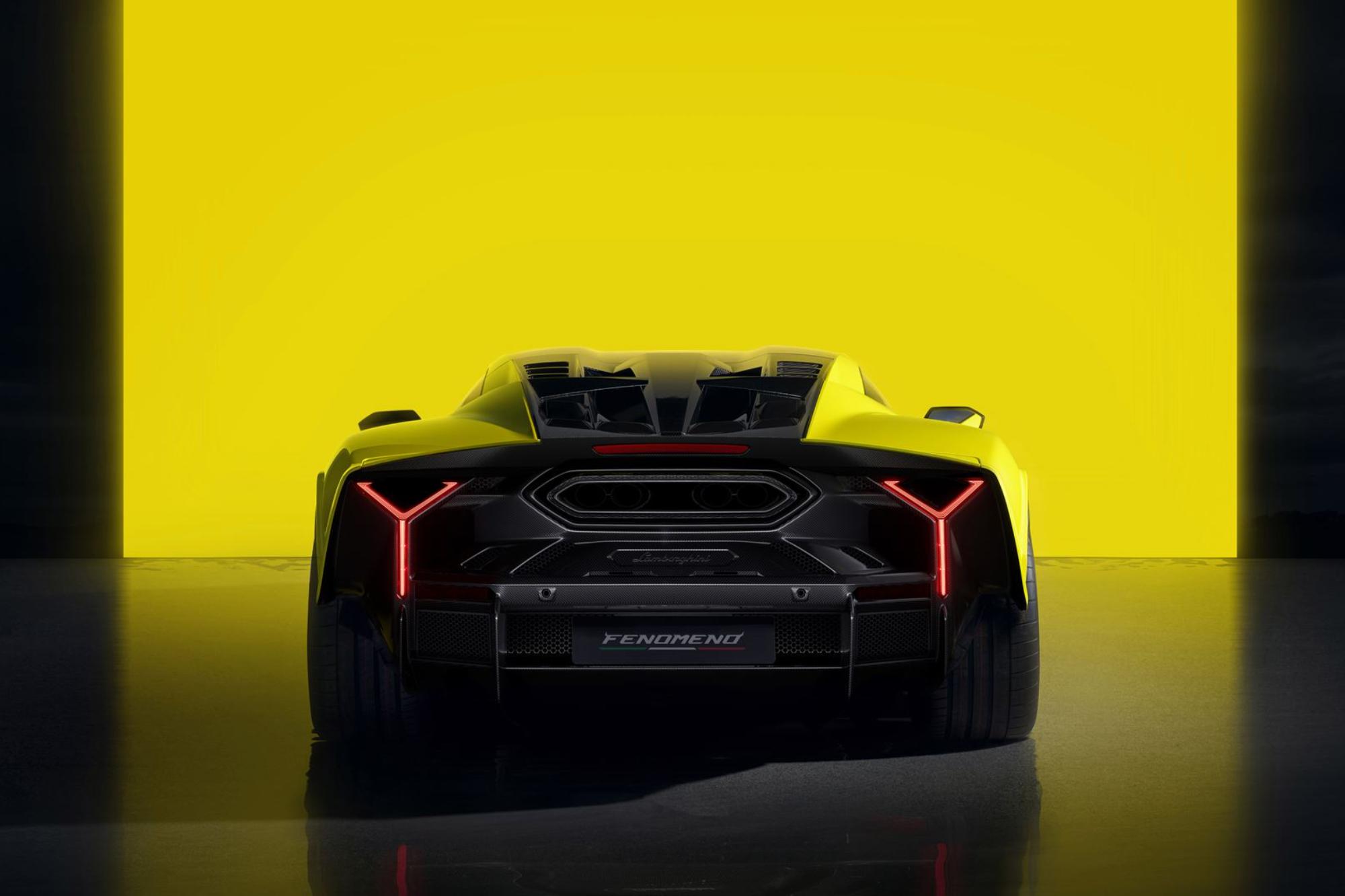 H Lamborghini έδωσε το παρόν και φέτος στην εκδήλωση Monterey Car Week κάνοντας τα αποκαλυπτήρια της ισχυρότερης Lamborghini ever, της Fenomeno, η οποία έχει βασιστεί πάνω στην Revuelto. H Fenomeno κινείται από έναν ατμοσφαιρικό 6.5lt V12 βενζινοκινητήρα, ο οποίος αποδίδει 835Ps και 73,9Kgm ροπής στις 6.750rpm, και τρεις ηλεκτροκινητήρες, δύο εκ των οποίων είναι τοποθετημένοι στον μπροστινό άξονα και ο άλλος πάνω στο οχτατάχυτο αυτόματο κιβώτιο διπλού συμπλέκτη, ο οποίος διαθέτει μια ηλεκτρική μονάδα που χρησιμοποιείται σαν γεννήτρια. Οι μπροστινοί ηλεκτροκινητήρες έχουν ισχύ 245Ps, ζυγίζουν μόλις 18,5kg, διαθέτουν δικό τους σύστημα ψύξης με λάδι και αντλούν ενέργεια από μια μπαταρία ιόντων λιθίου χωρητικότητας 7kWh. Η συνδυαστική απόδοση ξεπερνάει τα 1.080Ps κάνοντας την Fenomeno το ισχυρότερο μοντέλο των Ιταλών.