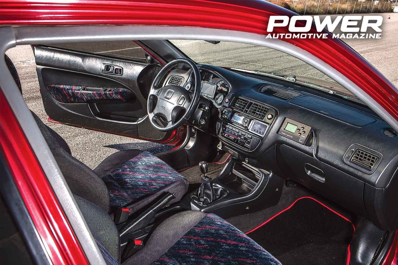 Ξεκινάμε από την πλευρά της εισαγωγής, όπου θα συναντήσουμε μία Edelbrock Victory-X, μία πολλαπλή εισαγωγής σχεδιασμένη είτε για turbo set-up είτε για σημαντικά βελτιωμένα, ατμοσφαιρικά μοτέρ, όπως αυτό που έχουμε εδώ και αποδίδει ιδανικά από τις 7.000rpm μέχρι και τις 10.000rpm. Η εισαγωγή αυτή μάλιστα δίνει και αναμονές για μπεκ ψεκασμού νίτρο, καθώς και για έξτρα τέσσερα μπεκ καυσίμου, όταν οι απαιτήσεις αυξάνονται. Η πολλαπλή αυτή κανονικά συνδυάζεται με την αντίστοιχη πεταλούδα των 65mm, που έχει στη γκάμα της η Edelbrock, εδώ όμως χρησιμοποιήθηκε μία λίγο πιο μεγάλη των 70mm, από την Ericks Racing. Μία από τις καλύτερες πολλαπλές εξαγωγής, που κυκλοφορούν στην αγορά για τα B-series μοτέρ, είναι η Hytech RMF. Επειδή όμως είναι ακριβούτσικη (περίπου €400), υπάρχει η λύση της αντιγραφής, πράγμα που έγινε και εδώ. Η υπόλοιπη εξάτμιση έχει 70mm διάμετρο, περιλαμβάνει ένα τελικό καζανάκι και έχει κατασκευαστεί από την Skrivanos Exhaust. Στην παροχή καυσίμου, τώρα, όλα ξεκινάνε από μία αντλία της Walbro, με παροχή στα 255lt/hr, που τροφοδοτεί τη μπεκιέρα της ΑΕΜ και αυτή με τη σειρά της τα μπεκ της Grams, που έχουν 550cc/min παροχή σε full duty. Στο ταμπλό θα συναντήσουμε δύο πολύ ενδιαφέρουσες μονάδες, κατασκευασμένες από τον Γιάννη Ανδριανάκη της Plex Tuning. Η πρώτη μονάδα είναι η οθόνη πολλαπλών ενδείξεων PBC SDM-500, μέσω της οποίας ο χρήστης μπορεί να παρακολουθήσει κυριολεκτικά τα πάντα. Από λόγο μείγματος αέρα/καυσίμου μέχρι πραγματικά km/h, στροφές κινητήρα, θερμοκρασίες και διάφορα άλλα. Ακόμα και επιδόσεις μπορεί να μετρήσει, μιας και η συσκευή αυτή έχει κεραία GPS. Η άλλη μονάδα είναι το Knock monitor V2, το οποίο παίρνει σήμα από κάθε κύλινδρο ξεχωριστά και προειδοποιεί τον οδηγό για την ποιότητα της καύσης. Τη διαχείριση όλων των παραπάνω την έχει αναλάβει ο Hondata S300, τον οποίο με τη σειρά του τον ανέλαβε ο Γιάννης Κουραμπάς. Ο S300 συνδέεται στην OBD θύρα και δίνει πολλές δυνατότητες στον προγραμματιστή, προκειμένου να παίξει με μείγματα, χάρτες ανάφλεξης κτλ. Ο προγραμματιστής εδώ έδωσε ρεσιτάλ και το αποτέλεσμα είναι κάτι παραπάνω από ικανοποιητικό. Στο δυναμόμετρο Vamag της DynoWorx, ο κινητήρας απέδωσε 272Ps!