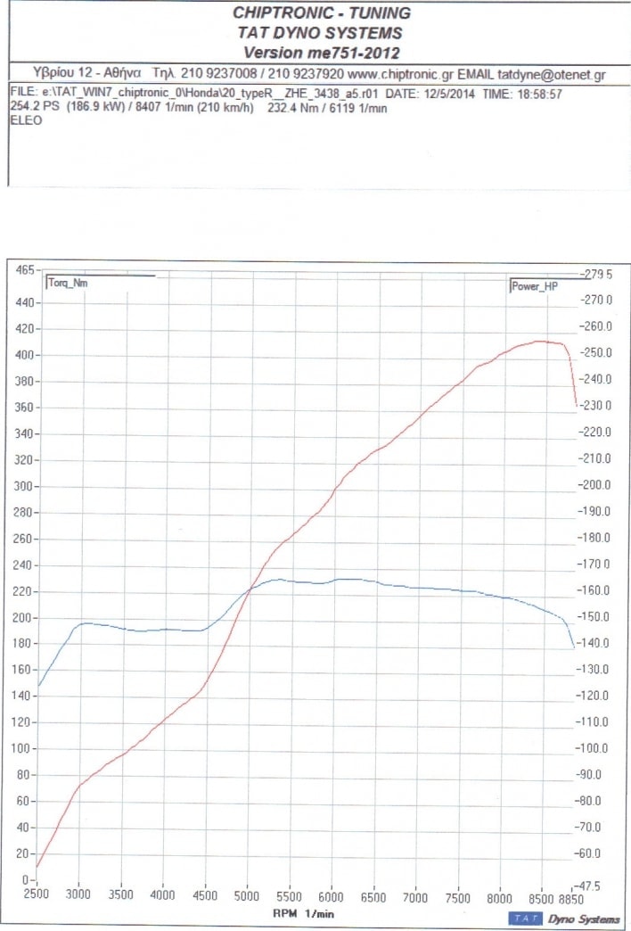 | ΔΙΑΓΡΑΜΜΑ ΔΥΝΑΜΟΜΕΤΡΗΣΗΣ Η δυναμομέτρηση πραγματοποιήθηκε στο δυναμόμετρο TAT της Chiptronic Tuning Μέγιστη ροπή (kgm/rpm) 23,7/6.119rpm | |