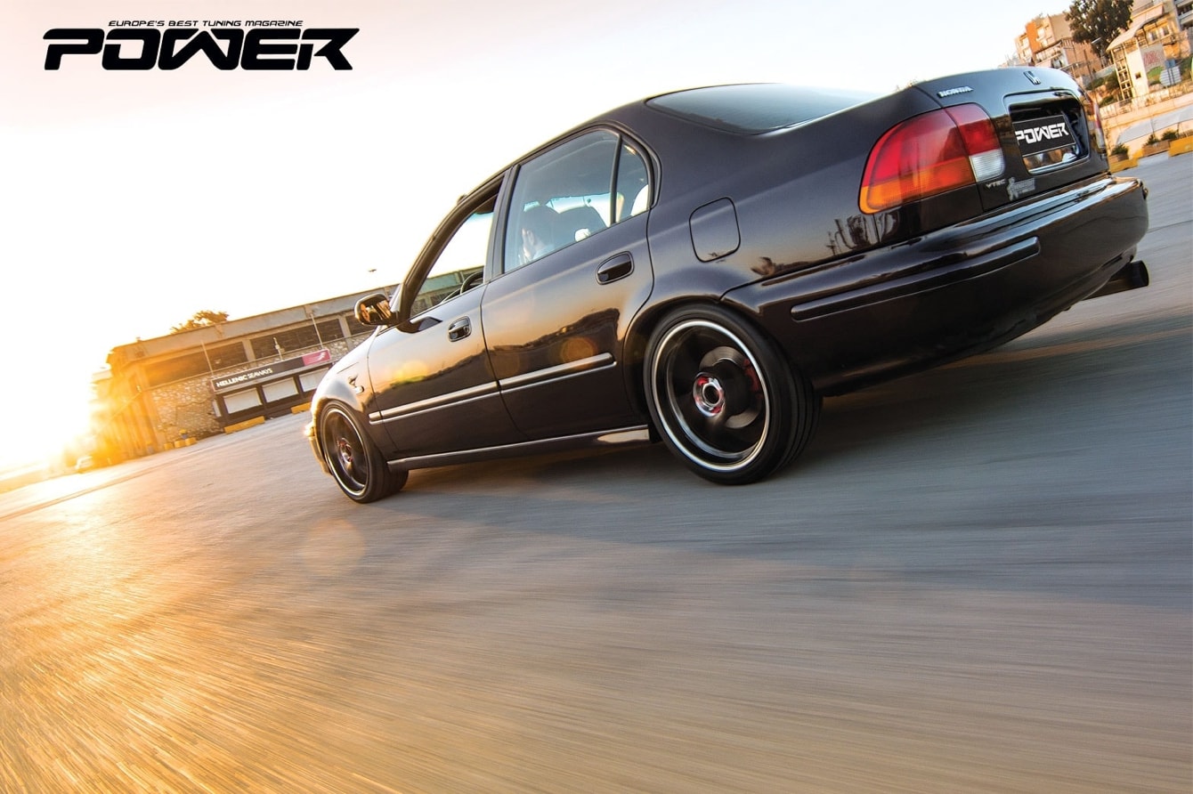 Ανέκαθεν η λέξη Honda έφερνε αυτόματα στο μυαλό μου είτε κάποιο τρίθυρο Civic, είτε το S2000 και ενίοτε το NSX. Τα sedan μοντέλα του Civic δεν τα είχα συνδυάσει με τις επιδόσεις των αντίστοιχων hatchbacks, συν το γεγονός πως δεν τα έβλεπες και συχνά στο δρόμο, περνούσαν σε ένα μάλλον αδιάφορο σημείο του εγκεφάλου μου. Κακώς. Ένα sedan Civic δεν έχει σε τίποτα να ζηλέψει από ένα τρίθυρο, ίσως λίγο βάρος παραπάνω μόνο, έχει αρκετά δυναμική γραμμή και το βασικό, μπορεί να γίνει εξίσου γρήγορο! Στο κάτω, κάτω ένας B16A2 το κινεί, μιας και πρόκειται για το Honda Civic VTi το οποίο μάλιστα στη συγκεκριμένη περίπτωση απέκτησε μεταξύ άλλων και ένα turbo για το οποίο θα διαβάσετε λίγο παρακάτω.