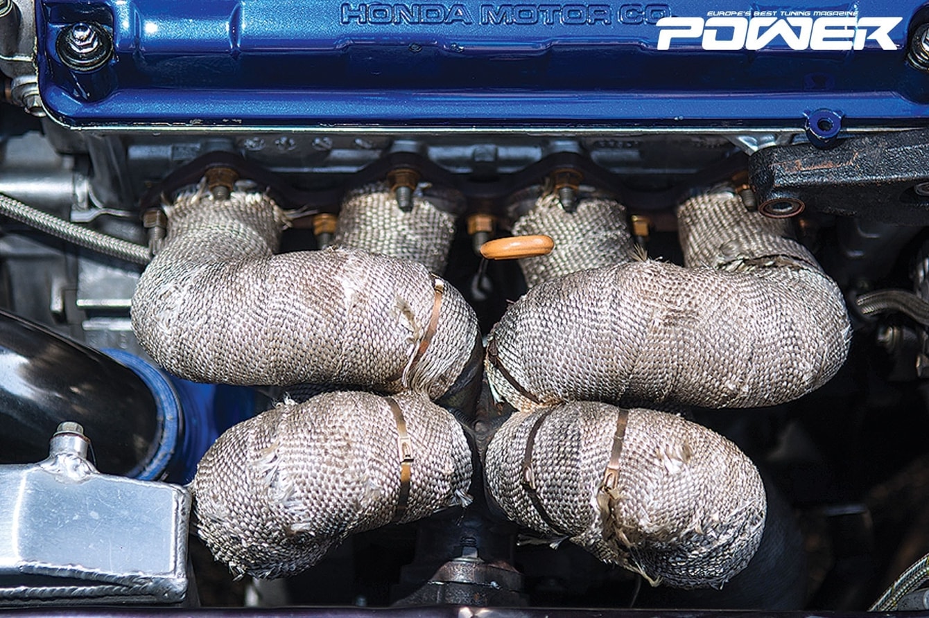 Η δημοφιλέστερη σειρά κινητήρων της Honda είναι αναμφισβήτητα η σειρά Β, με κυριότερο εκπρόσωπο τον Β16Α. Πρόκειται για ένα άριστο πεδίο εξέλιξης με πραγματικά άπειρες λύσεις για να βγάλει κανείς ροπή και δύναμη. Η χαρά του βελτιωτή με άλλα λόγια. Ο συγκεκριμένος κινητήρας έγινε πεδίο δράσης της HondaSport Nikiforos και απέκτησε αλεξίσφαιρα χαρακτηριστικά, με σφυρήλατα πιστόνια της JE Pistons, ενισχυμένες μπιέλες της Crower και block guard της Supertech Performance, ενώ δέθηκε με το καπάκι με βίδες κεφαλής της ARP. Τα κουζινέτα παρέμειναν τα νορμάλ της Honda, όπως επίσης και η κυλινδροκεφαλή και όλο το valvetrain. Τοποθετήθηκε και ένα ελαφρύτερο βολάν της 1320pro, αλουμινένιο, με βάρος στα 3,78kg και πλέον οι εργασίες στο μπλοκ είχαν τελειώσει. Σειρά έχουν τα περιφερειακά. Η εργοστασιακή εισαγωγή αλλάχθηκε με μία πολλαπλή της Skunk2, που στην άκρη της τοποθετήθηκε μια πεταλούδα γκαζιού με διάμετρο στα 65mm, της S90 Performance. Από την πλευρά της εισαγωγής πάμε στην παροχή καυσίμου, που πλέον μία μπεκιέρα της AEM στέλνει καύσιμο μέσω των μπεκ της Grams Performance που έχουν παροχή στα 1.000cc/min, τα οποία τροφοδοτούνται με την σειρά τους από μία αντλία της Bosch.