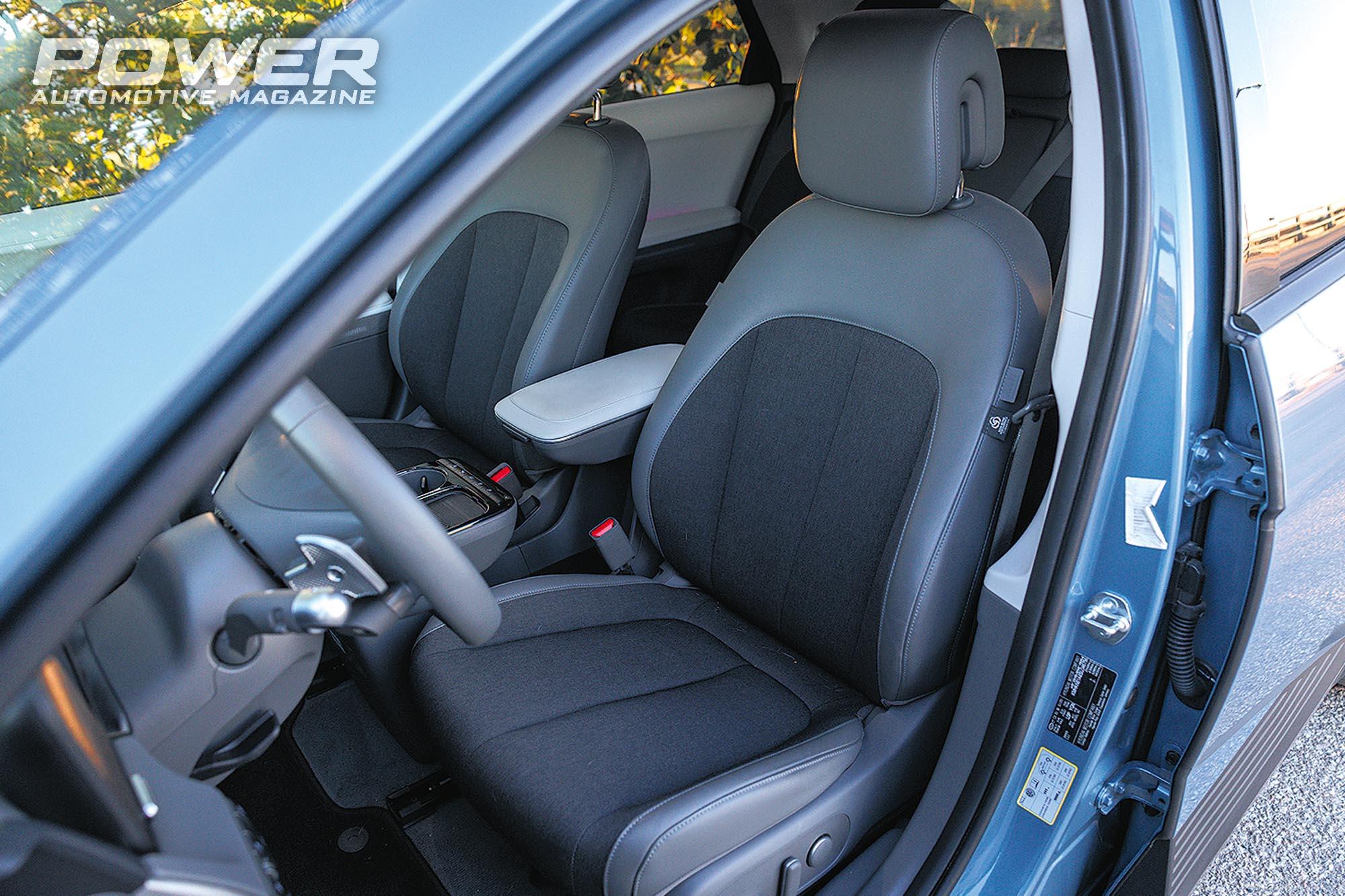 Στο εσωτερικό, οι αλλαγές των σχεδιαστών είναι εύστοχες, καθώς διατήρησαν τη μινιμαλιστική προσέγγιση, βελτιώνοντας παράλληλα την εργονομία. Η «αιωρούμενη» κεντρική κονσόλα επανασχεδιάστηκε ώστε να προσφέρει μεγαλύτερη πρακτικότητα, με τις ποτηροθήκες σε κατακόρυφη διάταξη, ενώ η ασύρματη βάση φόρτισης Smartphones έχει μετακινηθεί πιο μπροστά για ακόμα πιο εύκολη πρόσβαση. Οι φυσικοί διακόπτες είναι αρκετοί σε πείσμα της μόδας ένταξης των διάφορων λειτουργιών στις οθόνες, κάτι που στην πράξη ποτέ δεν ήταν χρηστικό ιδιαίτερα όταν οδηγείς. Ακόμα και ο διζωνικός κλιματισμός έχει δικό του ξεχωριστό panel ελέγχου με πλήκτρα αφής. Το πάνελ με τις δίδυμες οθόνες των 12,3in παραμένει, διαθέτει όμως πιο λεπτά πλαίσια ανάμεσά τους, ενώ έχει αναβαθμισμένο και ταχύτερο λογισμικό με δυνατότητα over-the-air ενημερώσεων. Ο γενικότερος διάκοσμος διατηρεί το high-tech προφίλ, με τα ποιοτικά και οικολογικά υλικά σε κάθε μέρος της καμπίνας, όπως ακριβώς συμβαίνει σε ένα αμιγώς ηλεκτρικό μοντέλο που στηρίζει την βιωσιμότητα με κάθε τρόπο προς όφελος του καταναλωτή.