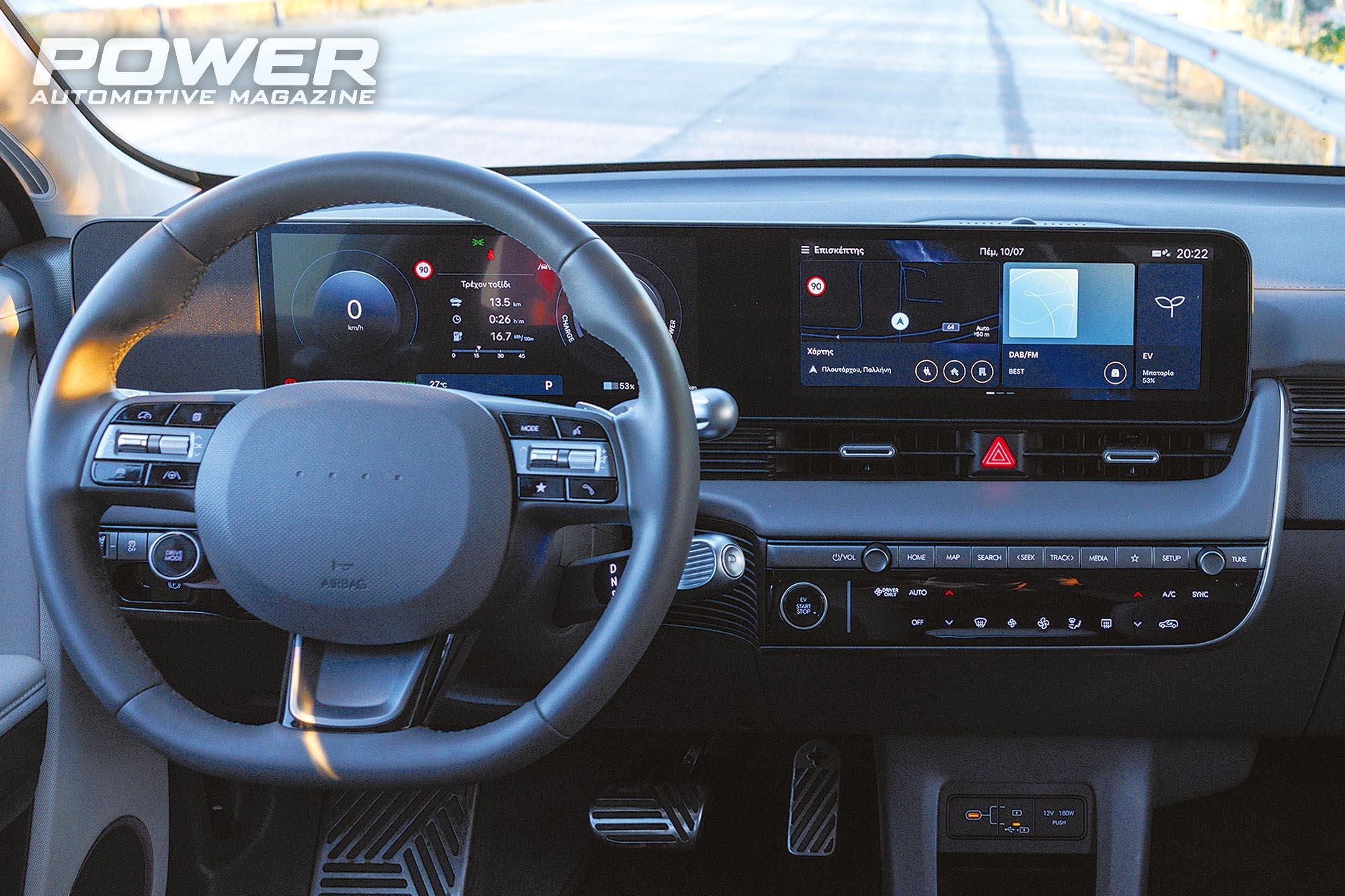 … είναι η αύξηση της χωρητικότητας της μπαταρίας, που από τις 77kWh ανέβηκε στις 84kWh. Η ωφέλιμη χωρητικότητα είναι πλέον στις 80kWh, κάτι που σε συνδυασμό με τις βελτιώσεις στην αεροδυναμική έχουν ως αποτέλεσμα ακόμα μεγαλύτερη αυτονομία. Η πισωκίνητη έκδοση των 230 ίππων, που είχαμε στα χέρια μας, πλέον μπορεί να διανύσει εύκολα 480-500km με μία πλήρη φόρτιση σε μεικτό κύκλο. Η Hyundai αναφέρει μάλιστα ότι μέσα στην πόλη η συγκεκριμένη έκδοση μπορεί να διανύσει έως και 784km, νούμερο φυσικά αισιόδοξο, όμως η αλήθεια είναι ότι η κατανάλωση που είδαμε σε τέτοιες συνθήκες πέφτει εύκολα κάτω από τις 15kWh/100km, όταν στον μεικτό κύκλο μετακίνησής μας βλέπαμε τιμές στα 17-19kWh/100km. Η Hyundai δηλώνει επίσης ότι έχει βελτιστοποιήσει τον τρόπο υπολογισμού της εκτιμώμενης αυτονομίας, παρέχοντας τώρα στον οδηγό τρεις ενδείξεις: τη βασική πρόβλεψη, μία ελάχιστη και μία μέγιστη, προσφέροντας έτσι πιο ρεαλιστική εικόνα των δυνατοτήτων του οχήματος υπό διαφορετικές συνθήκες.