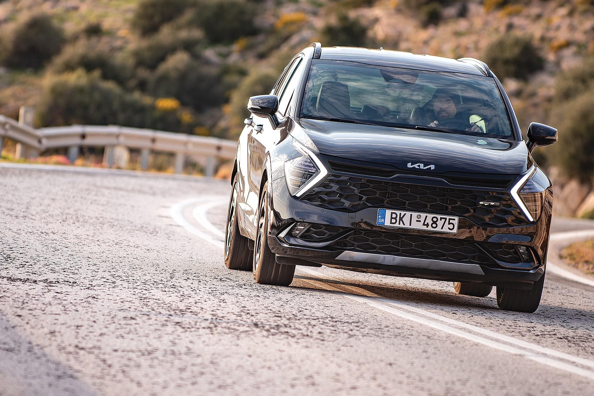 Το Sportage διαθέτει τρία προφίλ οδήγησης, το ECO, που όπως δηλώνει και η ονομασία έχει σκοπό την οικονομία καυσίμου, το Comfort και το Sport, κατά το οποίο αλλάζει η απόκριση του συστήματος διεύθυνσης, η ταχύτητα με την οποία γίνονται οι αλλαγές σχέσεων, αλλά και η απόκριση του κινητήρα, αφού εδώ σκοπός είναι οι περισσότερο σπορ επιδόσεις και συμπεριφορά. Επίσης, ανάλογα με το επιλεγμένο προφίλ, αλλάζουν και τα γραφικά στον ψηφιακό πίνακα οργάνων. Στην ECO λειτουργία, ο κινητήρας έχει αρκετά καλή απόκριση και δεν σου δίνει την εντύπωση πως «τεμπελιάζει», όπως γίνεται συνήθως σε αυτό το προφίλ σε άλλα μοντέλα. Στην Sport λειτουργία, βέβαια, ξεδιπλώνει τις αρετές του και προσφέρει αρκετή δύναμη, επιτρέποντας στο Sportage να πιάσει την τελική ταχύτητα των 201km/h, ενώ για το 0-100km/h χρειάζεται μόλις 8,8sec. Όταν πιεστεί το αυτοκίνητο σε ζόρικη διαδρομή με κλειστές στροφές, θα υποστρέψει ελαφρά, με τις κλίσεις να είναι μικρές και τον οδηγό να διατηρεί πάντα τον απόλυτο έλεγχο με το αρκετά ακριβές τιμόνι που κατευθύνει αποτελεσματικά το αυτοκίνητο που παρά την τεχνητή του αίσθηση, το γενικό vibe είναι θετικό. Ακόμα και στο όριο ελέγχεται εύκολα και είναι πάντα προβλέψιμο, χωρίς απότομες αντιδράσεις. Αντίστοιχα θετικές είναι και οι εντυπώσεις από τα φρένα, που χρησιμοποιούν αεριζόμενους δίσκους των 320mm εμπρός και των 300mm πίσω και δύσκολα θα δείξουν σημάδια κόπωσης.