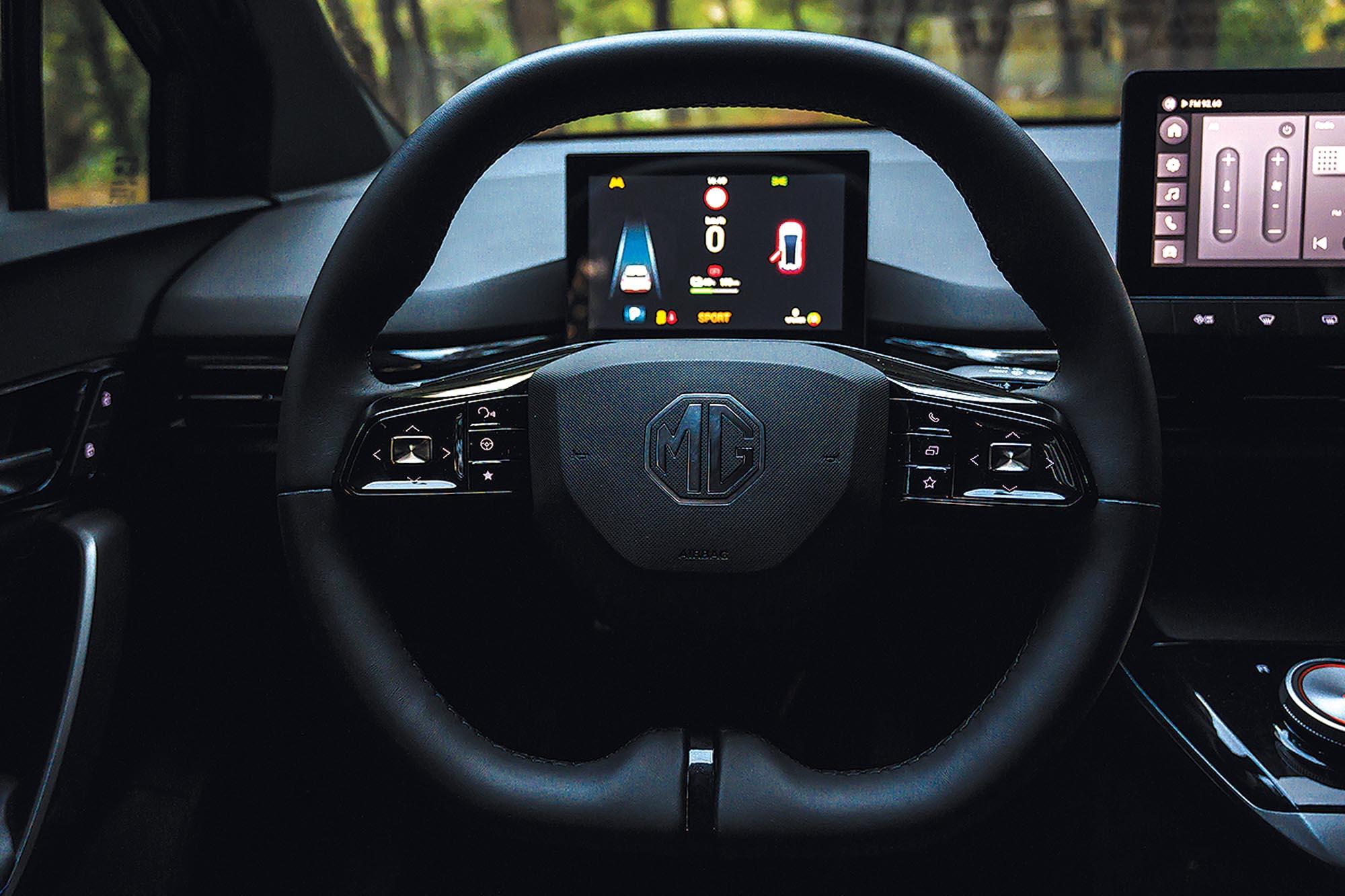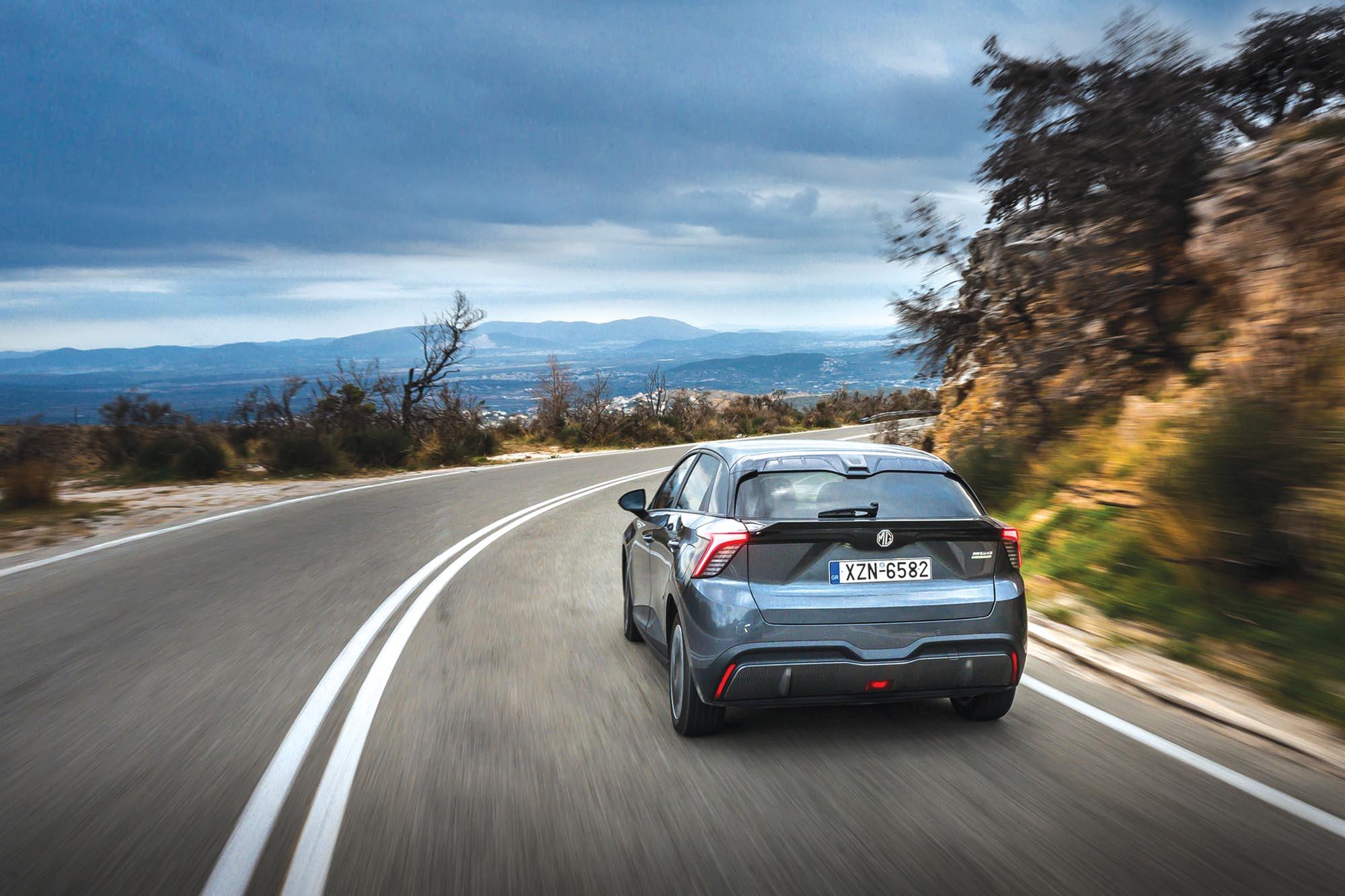 Στο δρόμο, το MG4 εξαργυρώνει όλα τα παραπάνω στοιχεία με τον καλύτερο τρόπο, προσφέροντας ζωντάνια και δόσεις σπορ συμπεριφοράς μέσω της αίσθησης και της ακρίβειας που έχει στο χειρισμό του. Η ανάρτηση χωρίς να είναι μαλακή προσφέρει καλά επίπεδα άνεσης, ενώ ικανοποιεί απόλυτα με την ποιότητα κύλισής του, αν και η ηχομόνωση επιτρέπει αυξημένο θόρυβο κύλισης σε μέτριο/κακό οδόστρωμα. Οι κλίσεις είναι αισθητές, άλλα απολύτως λογικές και αν το πιέσεις, παραμένει σταθερό και ακλόνητο στην υπερβολή. Η εμπιστοσύνη που έχει η MG στο συγκεκριμένο αυτοκίνητο αποτυπώνεται και σε ένα άλλο χαρακτηριστικό που δεν το συναντάμε συχνά. Μπορείς να απενεργοποιήσεις το ESP, όμως αυτό δε σημαίνει πως όντας πισωκίνητο θα αρχίσει να πλαγιολισθαίνει και να καπνίζει τα λάστιχά του. Αφενός γιατί δεν υπάρχει κανένας λόγος να το κάνει αυτό και αφετέρου γιατί και με δεδομένο το άμεσο ηλεκτρικό powertrain, θα ήταν αρκετά δύσκολο να το διαχειριστείς, αντ' αυτού κόβει την ισχύ του ηλεκτροκινητήρα όταν το παρακάνεις. Μπορείς βεβαίως να κοροϊδέψεις λίγο τα αυστηρά πλαίσια που θέτουν τα ηλεκτρονικά και να έχεις στιγμιαία μια μικρή υπερστροφή ισχύος, η οποία ουσιαστικά θα σε βοηθήσει στην αρχική τοποθέτησή του σε μια στροφή, αλλά ακόμα και χωρίς αυτή και πάλι το MG4 είναι πολύ ευχάριστο και αποτελεσματικό έχοντας ως σύμμαχό του ένα ιδιαίτερα ακριβές μπροστινό. Τα φρένα του τέλος είναι αποτελεσματικά και η αίσθηση από το πεντάλ είναι σχετικά καλή, κάτι που μπορείς να διαπιστώσεις μόνο όταν δεν επιλέξεις τη λειτουργία one pedal για την ανάκτηση.