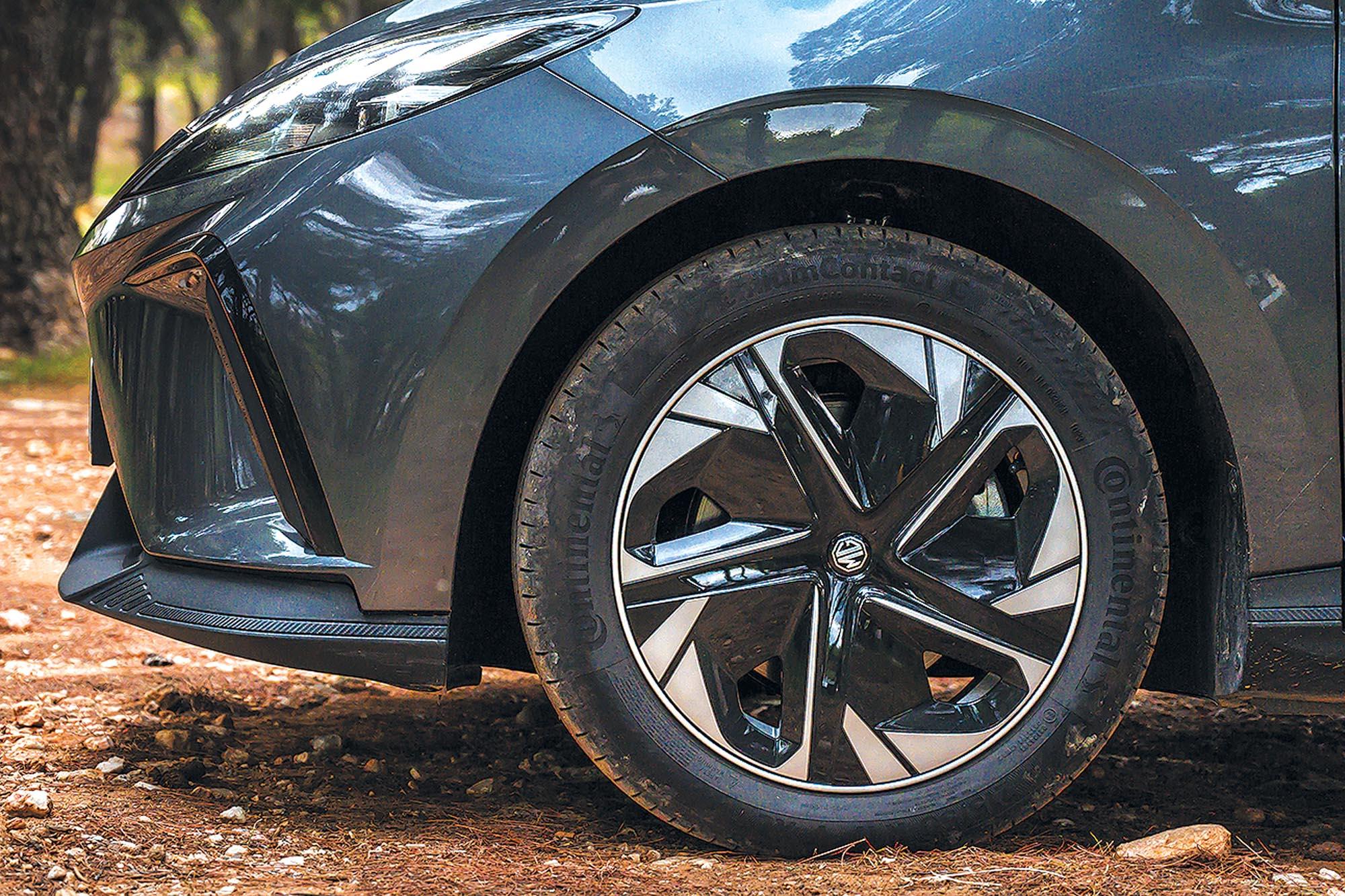 Το MG4, όπως είπαμε, κατασκευάστηκε εξαρχής ως ηλεκτρικό και πατάει πάνω στην αρθρωτή πλατφόρμα MSP (Modular Scalable Platform) της SAIC Motors, την οποία θα ήθελαν πολλοί Ευρωπαίοι κατασκευαστές για την έξυπνη αρχιτεκτονική της, τη μεταβλητότητα, το χαμηλό της βάρος και την ασφάλεια που προσφέρει. Για το τελευταίο να πούμε πως το MG4 έχει αποσπάσει την κορυφαία διάκριση των 5 αστεριών από τον οργανισμό EuroNCAP, με καλές επιμέρους βαθμολογίες. Μέσω της πλατφόρμας αυτής έχει επιτευχθεί η ιδανική αναλογία βάρους ανά άξονα (50:50) με πολλαπλά οφέλη στο κομμάτι της οδικής συμπεριφοράς. Η μπαταρία έχει χωρητικότητα 64kWh στην έκδοση Εxclusive που δοκιμάζουμε (η βασική Excite έχει μπαταρία 51kWh και 170Ps) και ο ηλεκτροκινητήρας αποδίδει 204Ps που περνούν στους πίσω τροχούς μέσω ενός κιβωτίου σταθερής σχέσης. Οι επιδόσεις είναι καλές, με 0-100km/h σε 7,9sec και τελική που περιορίζεται ηλεκτρονικά στα 160km/h, με την αίσθηση να είναι ακόμα καλύτερη, αφού η δύναμη βγαίνει αβίαστα στο δρόμο χωρίς απώλειες και φυσικά με την αμείωτη ένταση επιτάχυνσης που προσφέρουν τα ηλεκτρικά γενικότερα. Η κατανάλωση ενέργειας πολύ δύσκολα θα φτάσει ή θα ξεπεράσει τις 20kWh/100km και στην πόλη μπορεί να δεις ακόμα και κάτω από 10kWh/100km, με μέση τιμή τις 15,6kWh/100km και μέση αυτονομία της τάξης των 400km. Για τη φόρτισή του, με δυνατότητα να δεχθεί έως 135kW από ταχυφορτιστή DC, αρκούν 35min για την ανάκτηση του 10-80%, ενώ από συμβατικό Wallbox 7,4/11kW μια πλήρης φόρτιση διαρκεί 10 ή 6 ½ ώρες αντίστοιχα.