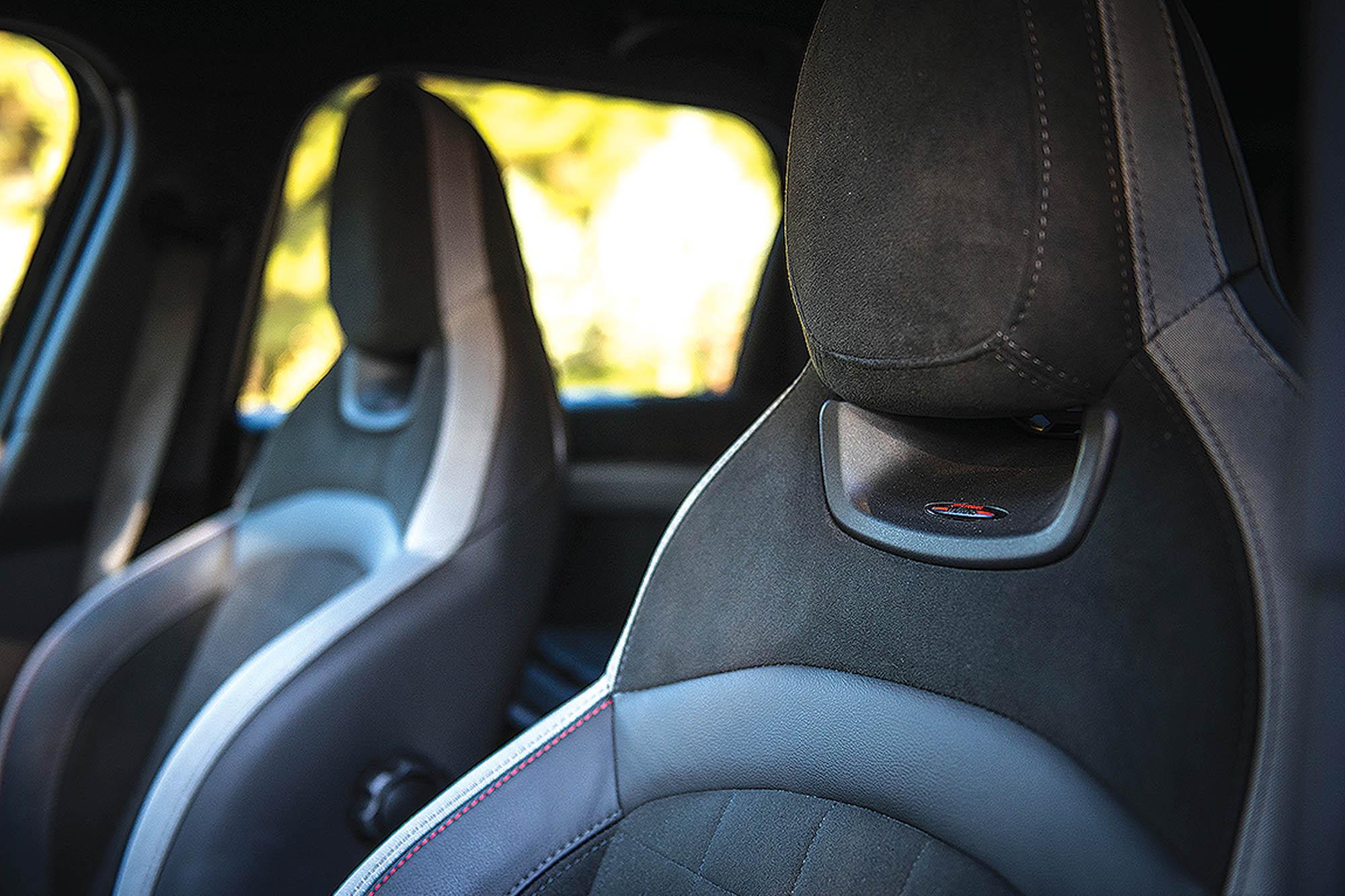 Δεν υπάρχει περίπτωση να περάσει από κάπου το Countryman JCW και να μην το κοιτάνε όλοι. Είναι αυτός ο μοναδικός συνδυασμός του «extra large χαριτωμένου» που είναι αδύνατον να μην το χαζεύει κάποιος στο δρόμο. Βοηθάει βέβαια σε αυτό και το μοναδικό κοστούμι του JCW, με το τρομερό χρώμα Rebel Green, την κόκκινη απόχρωση στην οροφή, τους καθρέφτες και την κυψελοειδή μάσκα, αλλά και τις κόκκινες λωρίδες στο καπό και τα μαρσπιέ. Οι 19άρες ζάντες, τα μεγάλα φρένα, ο προκλητικός πίσω προφυλακτήρας με τον διαχύτη και τις διπλές απολήξεις των 85mm είναι εκεί να υπενθυμίσουν ότι αυτό το Countryman «δεν μασάει». Στο εσωτερικό όμως δεν καταλαβαίνεις ότι είσαι σε ένα σκληροπυρηνικό αυτοκίνητο 306 ίππων. Η θέση οδήγησης είναι ιδιαίτερα αναπαυτική με τα σπορ καθίσματα να είναι ντυμένα με δέρμα και alcantara, συνθέτοντας μία εξαιρετική μείξη ποιότητας. Το στυλ κυριαρχεί στη σχεδιαστική φιλοσοφία του ταμπλό, διατηρώντας όμως τη ρετρό λογική, με την οθόνη 8,8in στο κέντρο του ταμπλό να δίνει το απαραίτητο hi-tech στίγμα συνδεσιμότητας και ενημέρωσης. Τα υλικά που χρησιμοποιούνται συνάδουν με την premium νοοτροπία των μοντέλων της MINI, με μοναδική παραφωνία τα σκληρά πλαστικά στο κάτω μέρος του ταμπλό.
