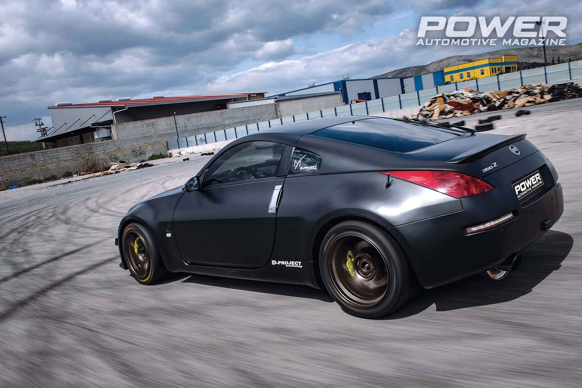Γίνεται; Γίνεται το ίδιο αυτοκίνητο να μπορεί να χρησιμοποιηθεί σε όλες τις μορφές του μηχανοκίνητου αθλητισμού και να είναι καλό σε όλα; Ναι, τελικά γίνεται, αρκεί να είναι τόσο βελτιωμένο όσο αυτό εδώ το Nissan του καλού μας φίλου, του Αντώνη, που κατά καιρούς μας έχει φέρει όλα του τα αυτοκίνητα και όλα είναι πολύ προσεγμένα και πολύ «πληρωμένα». Φανταστείτε ότι ανάμεσα στα άλλα που μας έχει φέρει για δοκιμή περιλαμβάνονται Audi R8 και μία Lamborghini Gallardo, αλλά για τις πίστες και τον χαβαλέ του έχει αυτό εδώ το Nissan 350Ζ, οπότε σας βάζω λίγο στο κλίμα για το τι 350Ζ είναι αυτό. Αρχικά, να σας πω ότι το συνοδεύει με διάφορα σετ λάστιχα για όλες τις χρήσεις και γι’ αυτό στις φωτογραφίες το βλέπετε με διαφορετικές ζάντες. Δεν είναι από διαφορετική μέρα, επί τόπου τα άλλαζε. Με άλλα ήρθε, άλλα «έκαψε» και με άλλα θα πήγαινε την επόμενη μέρα στα Μέγαρα για track-day. Επίσης αξίζει να σημειωθεί ότι το αυτοκίνητο ήρθε οδικώς από την Αθήνα, έκανε πάνω από 10 γύρους στο test-rig “Θριάσιο”, έφυγε από εκεί με όσο λάστιχο έμεινε για μετρήσεις, γύρισε σπίτι και την επόμενη έκανε τις γύρες του στα Μέγαρα χωρίς να κάνει «κιχ». Ξεκούραστο, με σχεδόν μηχανική πίεση 0,75bar, όπου αποδίδει περίπου 500 άλογα, τα οποία είναι αρκετά για όλες αυτές τις «αθλοπαιδίες», ενώ στο 1,2bar έδειξε στο DynoJet της Stratis Autosport 683Whp/6.300rpm. Δουλεύει και περισσότερη πίεση αν χρειαστεί, αλλά δεν έχει και ιδιαίτερο νόημα, μιας και ως πισωκίνητο ακόμα και στο 1,2bar σπινιάρει ακόμα και την 5η, άρα δεν έχει ιδιαίτερο νόημα να την ανεβάσεις κι άλλο.