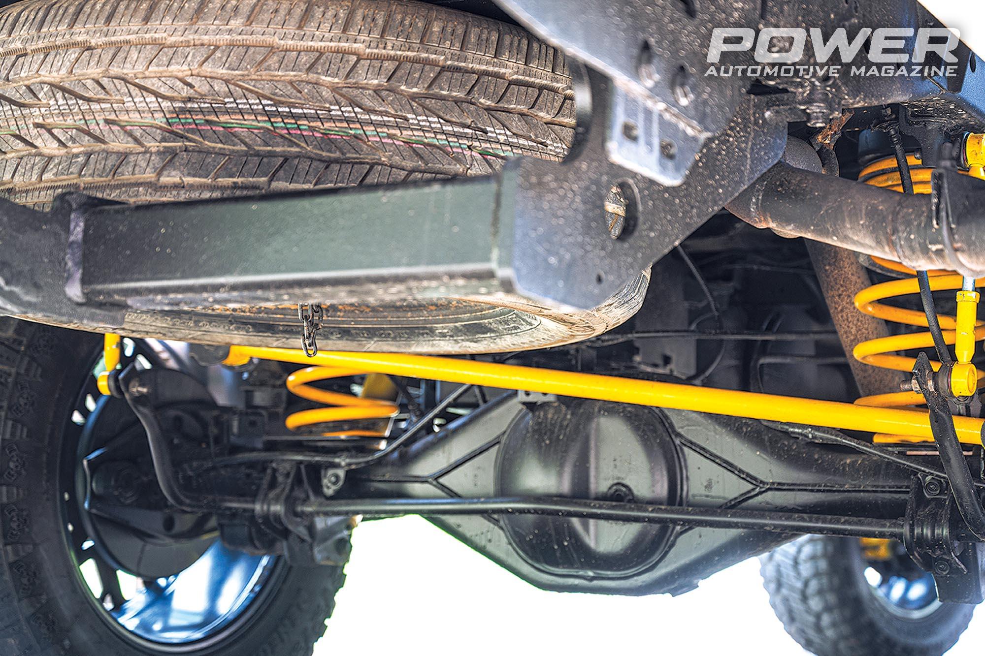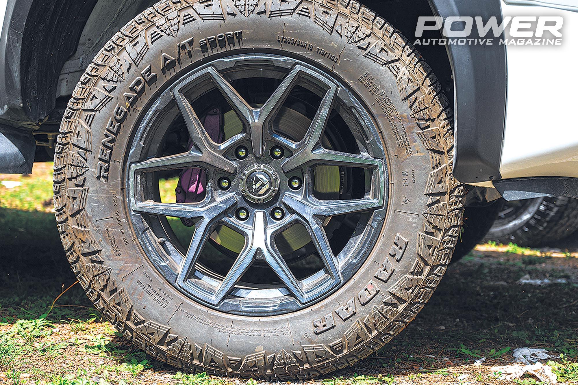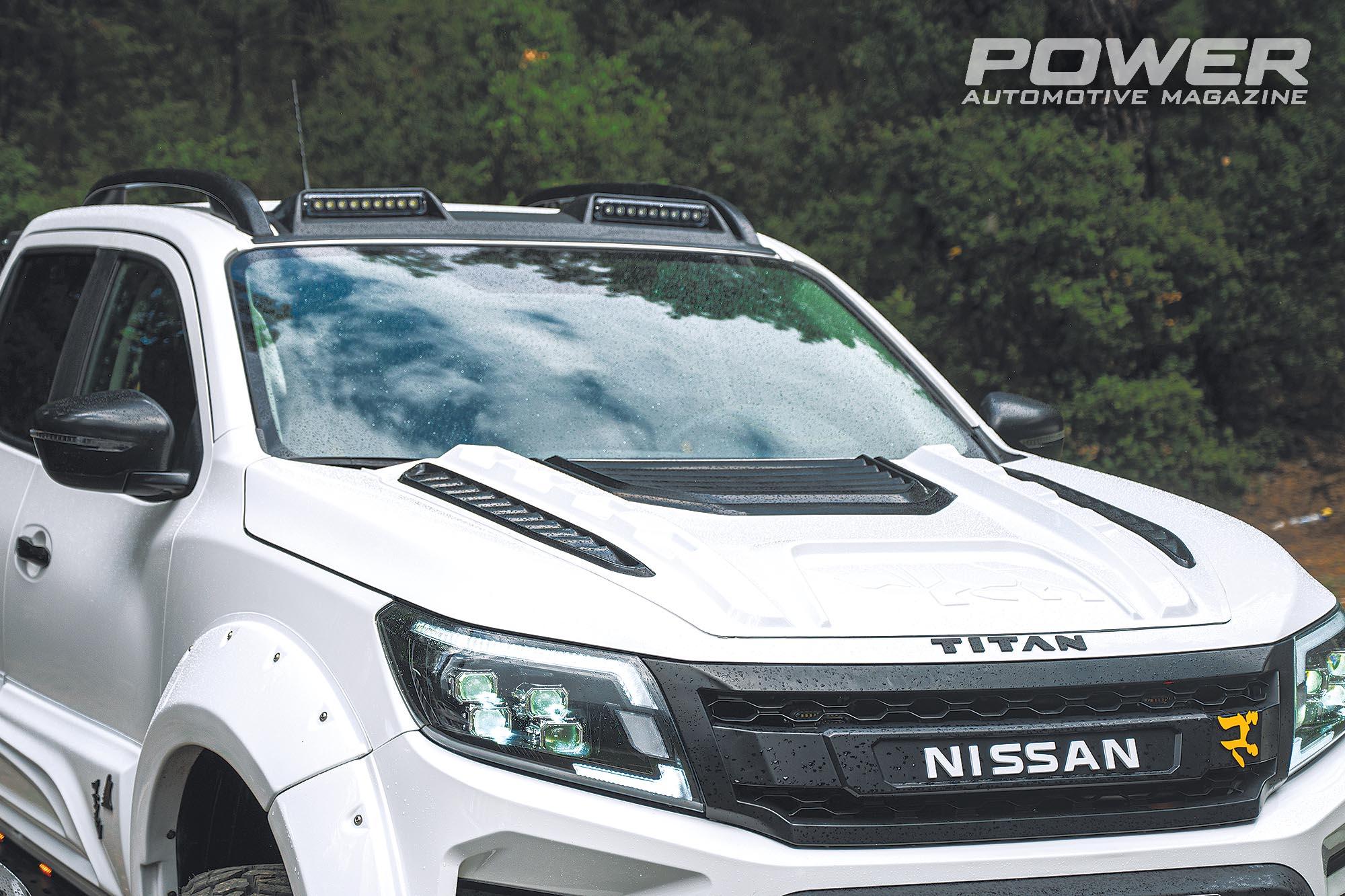 Το Navara της Motor Sports Haus από κοντά δείχνει ένα πραγματικό θηρίο, με συνολικά 40 πόντους ψηλότερο αμάξωμα από το εργοστασιακό με την ψηλότερη ανάρτηση της TJM, το Body lift kit +50mm Motor Sports Haus και τις τεράστιες ρόδες του των 20in, με 35in λάστιχα. Είναι ένα πραγματικό ιαπωνικό κτήνος. Συντελούν φυσικά και τα φουσκώματα στα φτερά, με τα βαμμένα overfenders, τα φανάρια από το τελευταίο μοντέλο του 2023 που δεν το έχω δει στην Ελλάδα ακόμα και γενικά η εμφάνισή του είναι πολύ επιβλητική. Το φουσκωμένο καπό με τον αεραγωγό της Rhino τονίζουν ακόμα περισσότερο τον macho χαρακτήρα του και ο εργάτης της Grizzly με 12.500lbs ελκτική ικανότητα πίσω από τον προφυλακτήρα δείχνει πως αυτό το Navara δεν είναι μόνο look, αλλά έχει άγριες διαθέσεις. Τα Custom ατσάλινα εμπρός ψαλίδια και ο πίσω μεταλλικός προφυλακτήρας της Motor Sports Haus είναι εκεί για να το επιβεβαιώσουν. Αυτό το Navara μπορεί να μπει μέσα στο δάσος και να διώξει τις αρκούδες. Τα σκαλοπάτια της Hamer 4x4 είναι απαραίτητα με το ύψος που έχει αποκτήσει, αν δεν θέλεις να πηδάς από μέσα στο έδαφος κάθε φορά που πας να κατέβεις και το Roll bar επίσης της Hamer 4x4 είναι εκεί για την «χτύπα ξύλο» περίπτωση που χρειαστεί να βγεις ανάποδα από το σαλόνι του Nissan Titan με τις custom ραμμένες δερμάτινες επενδύσεις. Γενικά, το αυτοκίνητο αυτό δεν παίζεται εκτός δρόμου, είτε στην λάσπη είτε στα χιόνια, έτσι όπως το έχουν βελτιώσει είναι ένα παιχνίδι για μεγάλα παιδιά, ακριβό μεν, αλλά εντυπωσιακό. Δεν υπάρχει περίπτωση να περάσεις από κάπου και να μην γυρίσουν όλα τα κεφάλια να το κοιτάξουν.