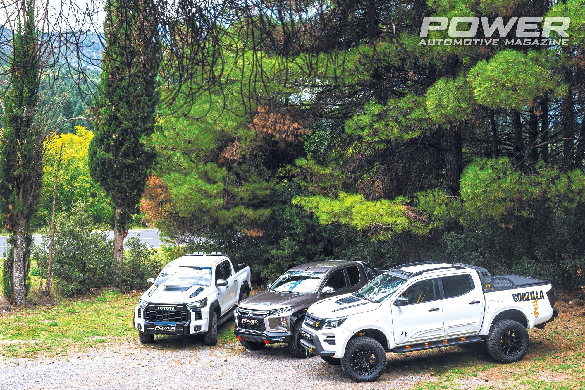 Μεταξύ των τριών πάντως, το πιο ολοκληρωμένο σύνολο και την καλύτερη συμπεριφορά στο ταξίδι την έχει το L200. Η αλήθεια είναι πως και οι τρεις κατασκευαστές έχουν πολυετή εμπειρία σε αυτά τα αυτοκίνητα και στην πραγματικότητα είναι περισσότερο θέμα γούστου, συνήθειας και αυτού που λέμε brand loyalty, ελληνιστί, «αυτό ξέρω, αυτό εμπιστεύομαι», το ποιο προτιμάει ο κάθε ένας. Επί της ουσίας, είναι πολύ παρόμοια και όλα κάνουν αυτό που υπόσχονται, με μικρές διαφορές. Όλα αυτά όταν μιλάμε για εντελώς εργοστασιακά αυτοκίνητα. Από την στιγμή που θα ξεκινήσουν να ηχούν τα αερόκλειδα της Motor Sports Haus, το κάθε ένα από αυτά, γίνεται αυτό που προστάζει το budget και το γούστο του ιδιοκτήτη. Πάμε να τα δούμε κι αυτά ένα-ένα.