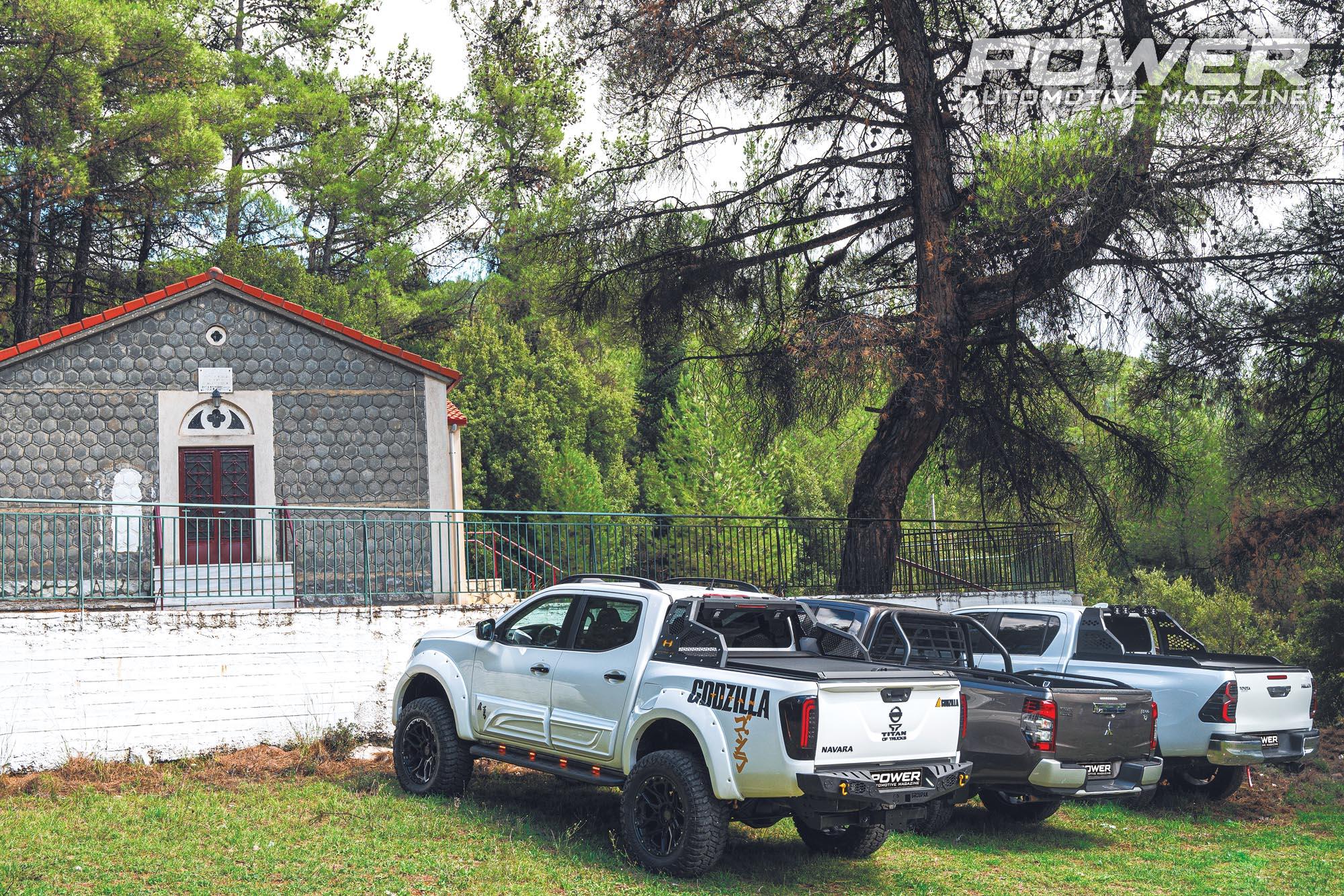 Η Motor Sports Haus στην Τρίπολη, όπως ήδη διαβάσατε στην δοκιμή με τα δύο Ford Ranger στις προηγούμενες σελίδες, δεν ασχολείται μόνο με τα μοντέλα της Ford. Έχει λύσεις και ευρεσιτεχνίες για σχεδόν όλα τα «αγροτικά» της αγοράς, είτε είναι καινούργια είτε παλαιότερα μοντέλα. Εδώ έχουμε τρία «φρέσκα», τα οποία έχει αναλάβει να τροποποιήσει με τέτοιο τρόπο, ώστε να έχουν μεγαλύτερες εκτός δρόμου ικανότητες και φυσικά μοναδική ξεχωριστή εμφάνιση. Ειδικά το Nissan Navara και το Toyota Hilux έχουν αποκτήσει look από τα πιο «τσαμπουκαλεμένα» αδέρφια τους, τα Titan και Tundra αντίστοιχα.