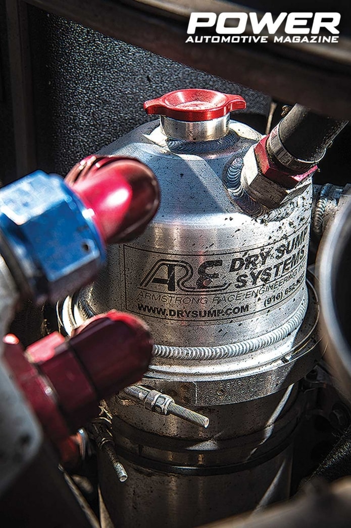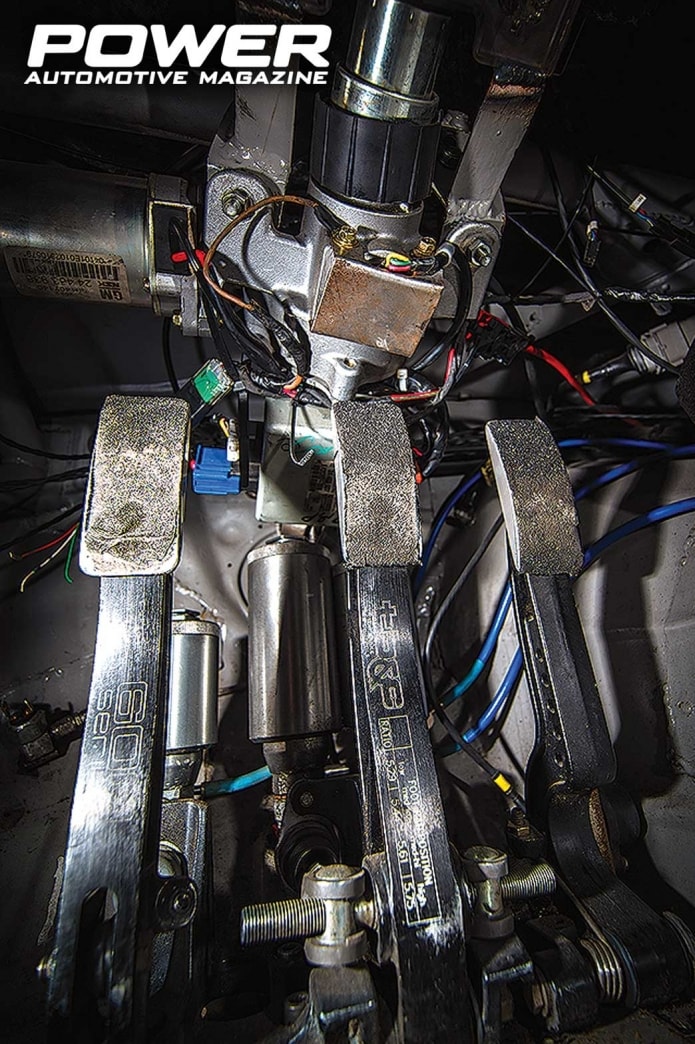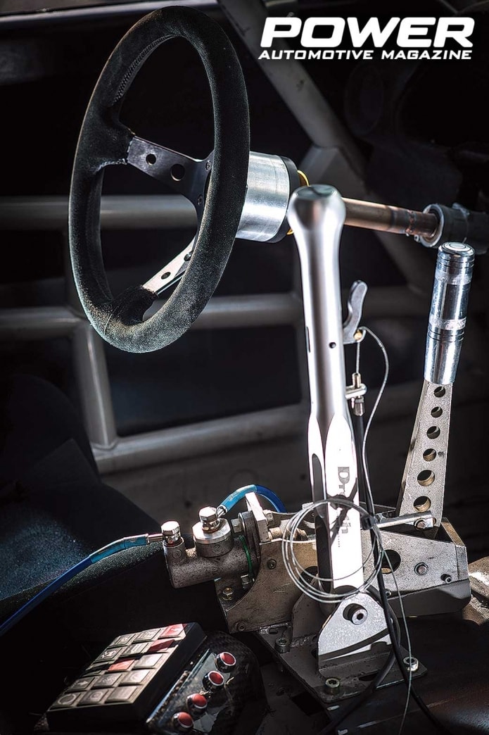 Η έλευση του S14 στην ομάδα του Dmitriy Illyuk σηματοδότησε μία νέα εποχή έρευνας και εξέλιξης. Η προετοιμασία της νέας καρότσας θα έπρεπε να είναι τέτοια, ώστε η τελευταία να είναι σε θέση να διαχειριστεί ιπποδύναμη διπλάσια από αυτήν του προκατόχου S13! Αν δεν το πιάσατε, μιλάμε για στόχο τα 1.000+Ps! Οι επεμβάσεις στο εμπρός και πίσω μέρος, εκ πρώτης όψης, δείχνουν τρομακτικές, αφού παντού βλέπεις σωλήνες να μπλέκονται μεταξύ τους, συνθέτοντας όμως εν τέλει έναν κυριολεκτικά απόρθητο κλωβό ασφαλείας. Ειδικά πίσω από τις πόρτες, η ενίσχυση είναι το κάτι άλλο! Τα εξωτερικά πάνελ του αμαξώματος έχουν αντικατασταθεί όλα με πλαστικά μέρη του custom bodykit της Dmitriy Illyuk Motorsport Custom με ονομασία Rocket Bunny Boss 2 kit. Τα πλαϊνά τζάμια είναι φυσικά από lexan, ενώ το πίσω πολύ απλά δεν υπάρχει και δεν νομίζω ότι το ξέχασαν ή το έκαναν για να γλιτώσουν βάρος, αλλά από κάπου πρέπει να βγαίνει και ο καπνός από τα λάστιχα, που εγκλωβίζεται στην καμπίνα και που, πιστέψτε μας, είναι πάααρα πολύς! Στο πίσω μέρος του Silvia έχουν μετακομίσει -ως είθισται στα driftάδικα με κτηνώδη μοτέρ- το ψυγείο νερού της Αμερικάνικης C&R Radiators, το καθόλου ευκαταφρόνητο σε μέγεθος δοχείο μεθανόλης της Snow Performance, καθώς και το δοχείο λαδιού του κινητήρα, που πλέον έχει σύστημα λίπανσης με ξηρό κάρτερ της ARE (Armstrong Race Engineering). Ο Dmitriy χρησιμοποιεί και στο S14 τα coilovers της Feal Suspension στην ανάρτηση, καθώς και τα front&rear Nissan Silvia kit της Wisefab, με πλήρως ρυθμιζόμενα ψαλίδια και κόντρα μπάρες. Μέσα από τους εμπρός τροχούς των 7Jx17in διακρίνονται καθαρά οι 4πίστονες AP Racing δαγκάνες, με τα RC8 τακάκια της Carbonne Loraine και τους χαρακτούς -τύπου «μαργαρίτα»- αεριζόμενους δίσκους με διάμετρο 330mm. Στον πίσω άξονα, οι τροχοί είναι μεγαλύτεροι, 10,5Jx18in και τα φρένα μικρότερα, με 2πίστονες Brembo δαγκάνες, Ferodo DS2500 τακάκια και χαρακτούς αεριζόμενους δίσκους 320mm.
