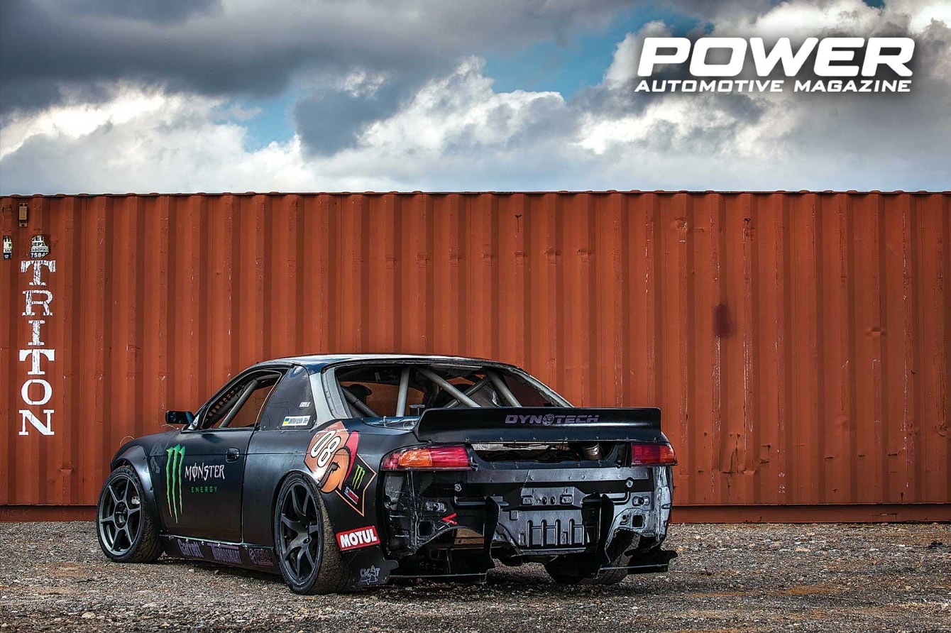 Δεν ήταν μόνο το στυλ οδήγησης του Ουκρανού, που τον έκανε να ξεχωρίζει, αλλά και εκείνο το πετσοκομμένο, πρόχειρα συναρμολογημένο εξωτερικά, μάχιμο μέχρι βαθιά μέσα στο πετσί του κατασκεύασμα, ένα αγωνιστικό πραγματικό σκυλί του πολέμου, εκείνο το λευκό, σωληνωτό εν μέρει, SilviaS13, που χανόταν μέσα στον πυκνό καπνό των εξαϋλωμένων πίσω ελαστικών, αφήνοντας σε κοινή θέα μόνο τη μούρη και τις φλόγες από το πλαϊνό external. Με βάρος 970kg και ιπποδύναμη στα 600Ps από τον SR22VET (με κυλινδροκεφαλή από SR20VE, oversized inconel βαλβίδες, ελατήρια βαλβίδων και retainers από τιτάνιο, σφυρήλατα CP πιστόνια και Brian Crower μπιέλες, ένα Garrett GTX3576 turbo, ID 2000 μπεκ, custom spec πολλαπλή εισαγωγής & εξαγωγή-εξάτμιση της Oleg Zaytcev Dynotech), το S13 εξοπλιζόταν επιπλέον με σειριακό κιβώτιο της Drenth, έναν R3C συμπλέκτη της OS Giken, διαφορικό από R33 Skyline με custom τελική σχέση μετάδοσης 4,11:1, 2 way μπλοκέ επίσης της OS Giken και R33 Skyline ημιαξόνια. Η διαχείριση γινόταν από μία stand alone ECUM800 της Motec, με custom καλωδίωση και προγραμματισμό από την Ουκρανική Dynotech. Ο Dmitriy συμμετείχε ενεργά στην εξέλιξη των front&rearkits ψαλιδιών της Wisefab για τα S13, πραγματοποιώντας δοκιμές σε διαφορετικής χάραξης και συντελεστών πρόσφυσης πίστες, ώστε τα kits να τελειοποιηθούν και να είναι διαθέσιμα προς πώληση. Η Feal Suspension είναι η coilover ανάρτηση, που συναντάμε σε όλα τα Silvia του Dmitriy, ενώ από αμάξι σε αμάξι φαίνεται να περνούν και οι 4πίστονες AP Racing δαγκάνες εμπρός, οι 2πίστονες Brembo πίσω και το υδραυλικό χειρόφρενο της Wilwood. Το S13 χάρισε αμέτρητες δυνατές στιγμές στον Dmitriy, τον μύησε στην τεχνική του drift, τον έφερε στο προσκήνιο, τον καταξίωσε και τον οδήγησε πολλές φορές στην κορυφή. Έτσι, παρά την παράδοση της σκυτάλης στο «αδερφό» S14, το S13 εξακολουθεί να βρίσκεται στην κατοχή του Dmitriy, δίχως πρόθεση από τον ίδιο να το αποχωριστεί. Είναι βλέπετε και ο πιτσιρικάς γιός του, που ακολουθεί… Το νεότερο Silvia, πριν φτάσει να «τερατοποιηθεί», όπως το βλέπετε εδώ, πέρασε από ένα παρόμοιο του S13 set-up, με SR20VET κορμό, SR20VE κυλινδροκεφαλή, όμοια περιφερειακά και απόδοση, αλλά με Vipec V88 ECU στη θέση του Motec.