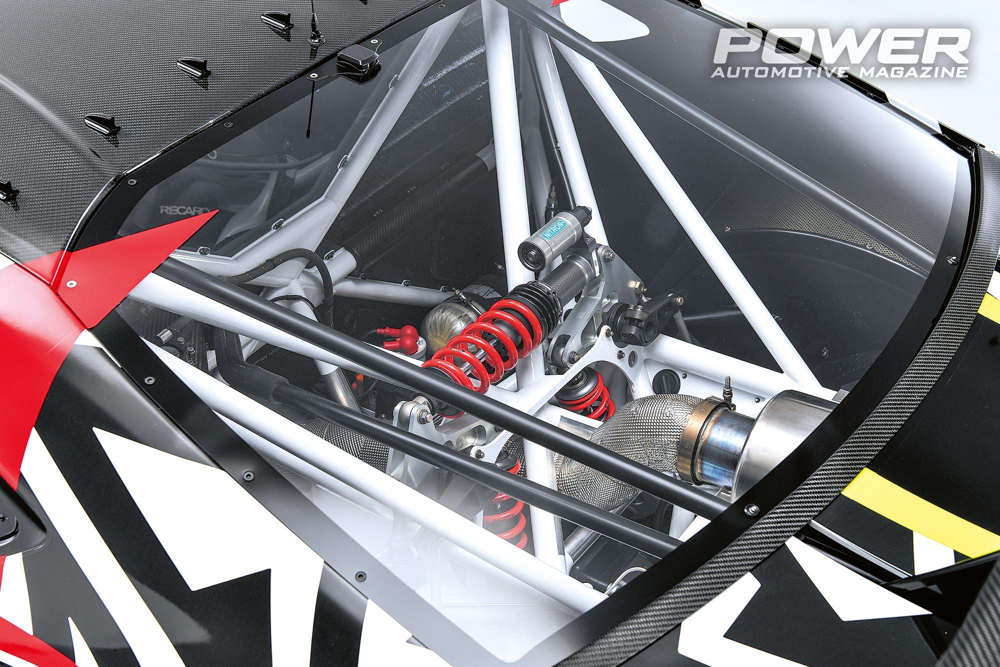 Όλα είναι custom και όλα είναι κατασκευασμένα με τις υψηλότερες motorsport προδιαγραφές. Ακόμα και τα φρένα έγιναν σε στενή συνεργασία με την Alcon και αποτελούνται από εξαπίστονες δαγκάνες και carbon-ceramic δίσκους 380mm μπροστά και 340mm πίσω με εξαπίστονες δαγκάνες, ενώ ακόμα και το σύστημα ABS της Bosch είναι motorsport-spec.