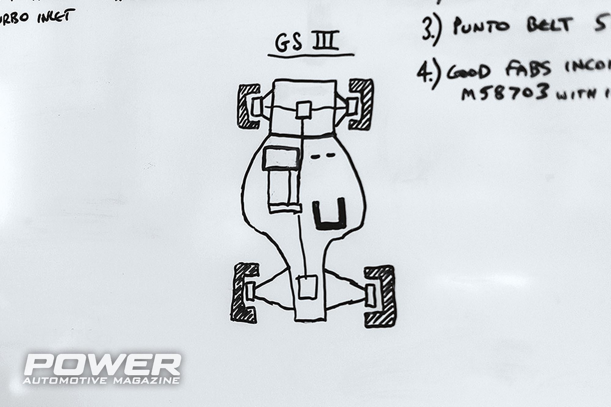 Ο Matt “Mad Professor”, κατά τον Olly, είναι λίγο OCD με την σχεδίαση και την εξέλιξη των εξαρτημάτων της RCM και φυσικά των project cars της εταιρείας. Πολλά βράδια καθόταν στο συνεργείο και προβληματιζόταν για το ΠΟΥ μπορούν να πάνε από το Gobstopper 2. Ένα βράδυ σχεδίασε σε έναν πίνακα που έχουν στο συνεργείο ένα σκαρίφημα αυτοκινήτου με τον κινητήρα στο κέντρο, τον οδηγό ακριβώς από δίπλα και κίνηση στους 4 τροχούς. Αυτό το σχεδιάκι έμελλε να αποτελέσει το εναρκτήριο του GS3 και παραμένει ανέπαφο στον πίνακα της RCM όλα αυτά τα χρόνια για να θυμούνται από πού ξεκίνησε το αυτοκίνητο.