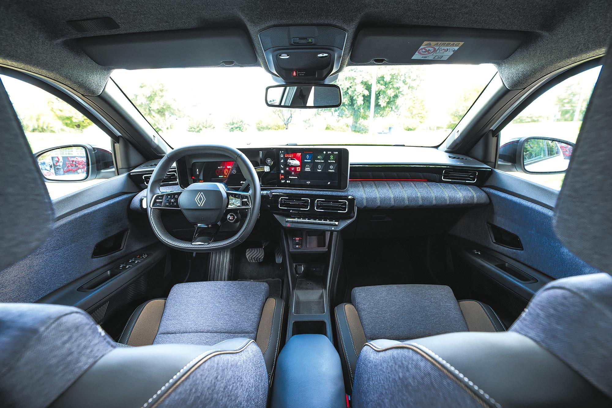 Ο οδηγός έχει μπροστά του έναν ψηφιακό πίνακα οργάνων 10,25in (7in στη βασική έκδοση techno), ενώ δίπλα της στο κέντρο του ταμπλό βρίσκεται η οθόνη αφής του συστήματος OpenR Link, με διαγώνιο 10,1in. Το σύστημα υποστηρίζει Google Maps (εμφανίζει σταθμούς φόρτισης, το υπόλοιπο της μπαταρίας μέχρι τον προορισμό κ.α.) και πρόσβαση στο Play Store. Φυσικά και υπάρχει ψηφιακός βοηθός τόσο στην μορφή του Google Assistant όσο και στο νέο avatar της Γαλλικής εταιρείας, τον Reno, ο οποίος αντλεί δεδομένα από το ChatGPT. Το μενού της οθόνης είναι πολύ χρηστικό και άμεσο στην απόκριση, με όμορφα και ευκρινή γραφικά. Επιπλέον, η εφαρμογή My Renault επιτρέπει τον απομακρυσμένο έλεγχο βασικών λειτουργιών (όπως φόρτιση, εντοπισμό του αυτοκινήτου, κλιματισμός καμπίνας), με τις υπηρεσίες Google Maps/Assistant να προσφέρονται δωρεάν για πέντε χρόνια.