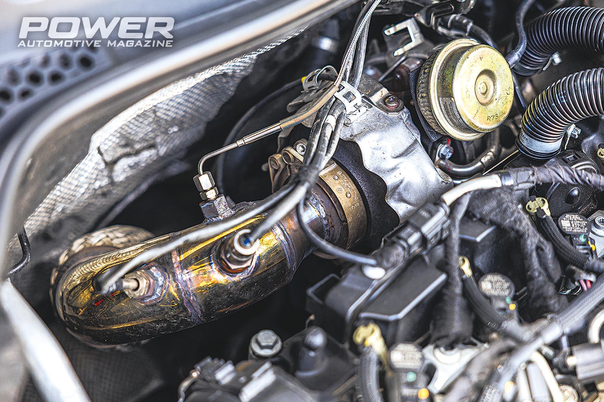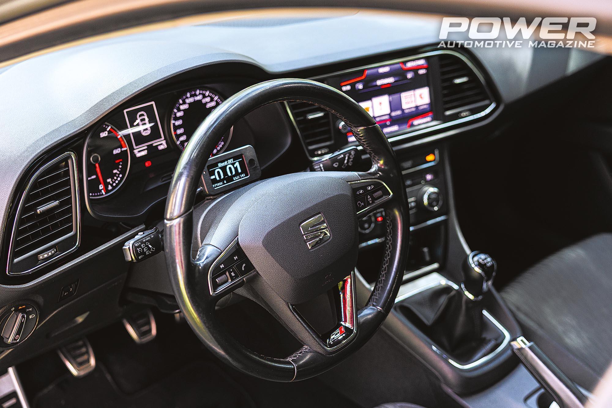 Το καλό με τα μοντέλα του VW Group, είναι πως είναι Playmobil και βρίσκεις πολλά ανταλλακτικά από την ευρύτερη οικογένεια των μοντέλων. Για παράδειγμα, η τουρμπίνα που έχουν χρησιμοποιήσει τα παιδιά εδώ είναι από VW Tiguan 2.0TDΙ που εργοστασιακά απέδιδε 190Ps. Την εξάτμιση την έχει φτιάξει μόνος του ο Πάνος, με την βοήθεια του Χάρη, με custom downpipe 70mm και σωλήνα 63,5mm από εκεί και πίσω με ένα τελικό καζανάκι. Το υδρόψυκτο chargecooler του Leon το κατάργησαν και στην θέση του τοποθετήθηκε αερόψυκτο front mount intercooler που κατασκεύασε ο Διονύσης στην MD Exhaust στο Αγρίνιο. Τα μπεκ και η αντλία πετρελαίου υψηλής πίεσης είναι εργοστασιακά, αφού μέχρι εδώ επαρκούν, οριακά μεν, αλλά επαρκούν. Η ηλεκτροβαλβίδα Ν75 που ρυθμίζει την πίεση στα μοντέλα της VW καταργήθηκε επίσης και την διαχείριση της πίεσης ανέλαβε το boost controller της iΒoost. Το φίλτρο αέρα είναι της Simota Racing και τον εγκέφαλο ECU Delphi DCM6.2V τον έχει προγραμματίσει με πρόγραμμα stage 3 ο Γιώργος Θεοδωρόπουλος στην GT Power. Η αναζήτηση εντός του Group συνεχίστηκε και στην μετάδοση, με κιβώτιο 6 σχέσεων από Audi A3 1.6TDI με πλατό της Sachs Performance και εξάφτερο custom δίσκο από τον Σταύρο Καντούνα της Technopart. Οι ζάντες του είναι από το Leon Cupra 1P και τα φρένα έχουν βελτιωθεί με μεγαλύτερους δίσκους 312mm της Zimmermann με κεραμικά τακάκια της ΑΤΕ. Η ανάρτηση είναι ρυθμιζόμενη coilover της FK Automotive. Είδατε, έχουμε παντού λύσεις που δεν «σπάνε την τράπεζα», αλλά αποδίδουν σωστά, φέρνοντας ένα τρομερά βελτιωμένο αποτέλεσμα από το εργοστασιακό Leon 5F 1.6TDI.