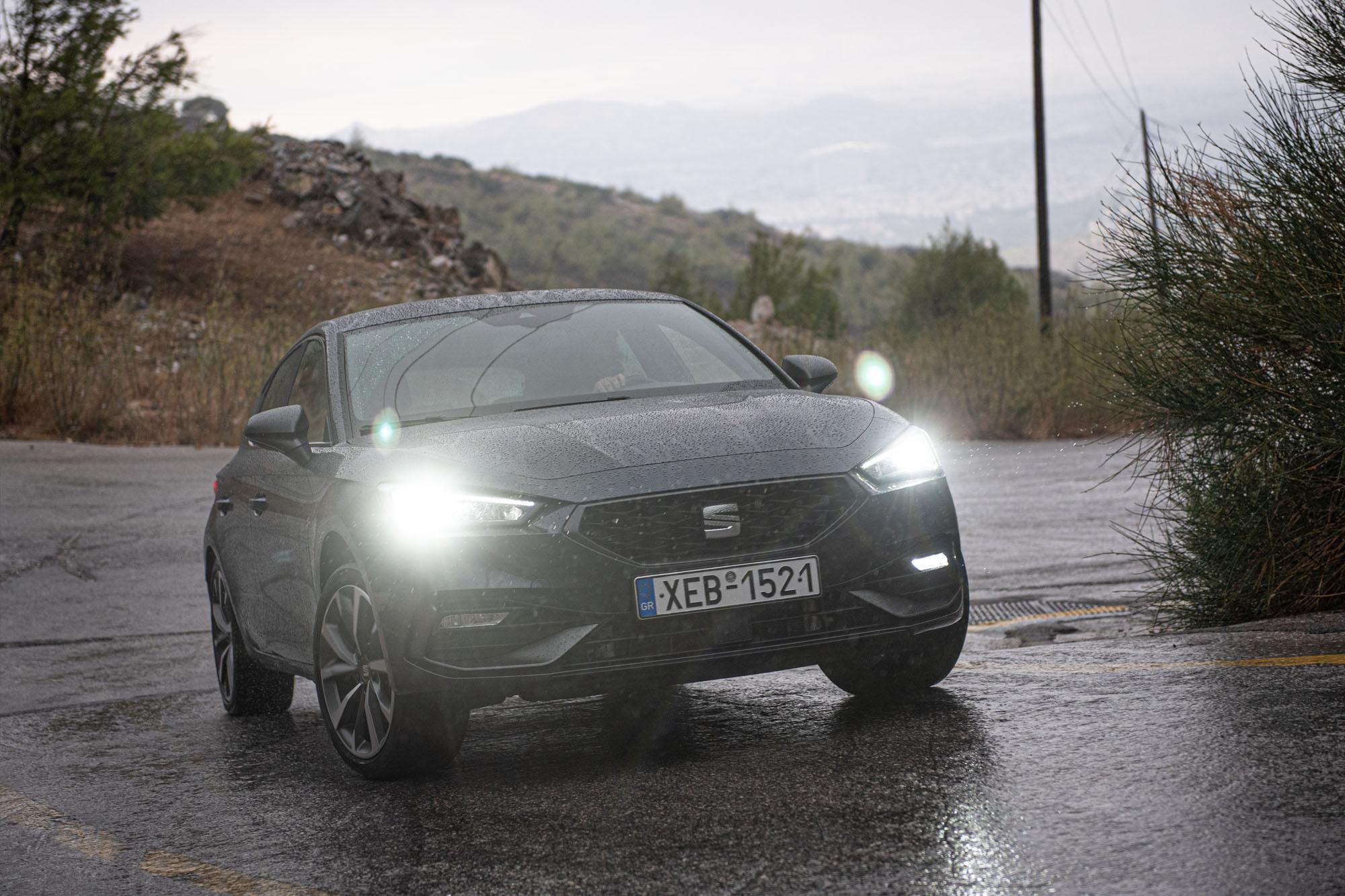 Στην πράξη, το υβριδικό σύστημα αποδίδει πολύ καλά και μάλιστα στη λειτουργία Sport χαρίζει και πολύ καλές επιδόσεις στο βαρύ αμάξωμα. Τα πρώτα 100km/h έρχονται σε 7,5sec, ενώ η τελική του ταχύτητα φτάνει τα 220km/h, δικαιολογώντας τα αρχικά FR που κοσμούν το πίσω δεξί μέρος του αυτοκινήτου. Η σφιχτή ανάρτηση ελέγχει εξαιρετικά το αμάξωμα του υβριδικού Leon, περιορίζοντας τις κλίσεις, ενώ φιλτράρει αποτελεσματικά τις κακοτεχνίες των δρόμων. Μόνο σε πολύ έντονες ανωμαλίες θα ενοχλήσει ελαφρά, μιλάμε φυσικά για έκδοση FR και μεγάλους τροχούς 18in, με ελαστικά 225/40. Η αδράνεια στις απότομες στροφές λόγω των επιπλέον 250 κιλών γίνεται αντιληπτή επίσης, αλλά όχι σε βαθμό που θα προβληματίσει τον οδηγό. Η γενική συμπεριφορά του Leon e-Hybrid είναι πολύ προβλέψιμη με την υποστροφή να αργεί να εμφανιστεί και το ESP να είναι ρυθμισμένο εξαιρετικά. Το πετάλι των φρένων έχει λίγο τεχνητή αίσθηση, αλλά η απόδοσή τους είναι πάρα πολύ καλή. Το τιμόνι δεν διακρίνεται για την αίσθηση που δίνει στον οδηγό του, είναι κάπως ελαφρύ, αλλά έχει άμεση απόκριση.