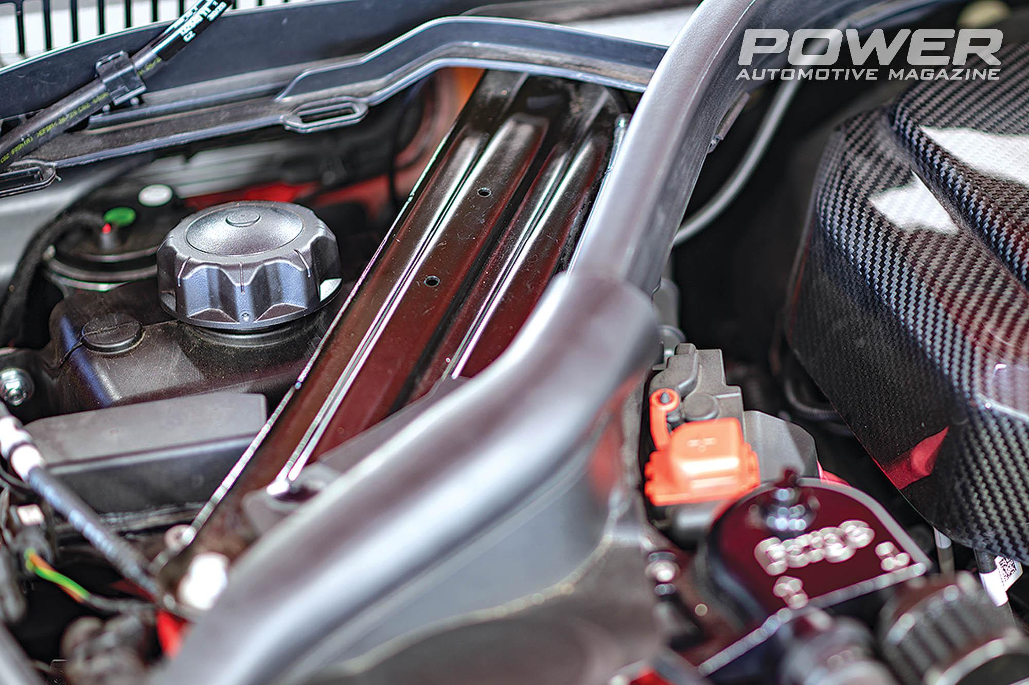 Προς το παρόν, έχει μόνο πρόγραμμα στον -ξεκλειδωμένο- εργοστασιακό εγκέφαλο της Petropoulos Werks, όπως και στο 8άρι σασμάν, ένα κιτ ψεκασμού μεθανόλης της Snow Performance, με κρυμμένο μάλιστα παγούρι κάτω από το πλευρικό καπάκι των υαλοκαθαριστήρων, λες και ήταν έτσι από το εργοστάσιο και ένα kit αναθυμιάσεων της Forge motorsport. Με αυτά τα ολίγα μεν σημαντικά δε πραγματάκια, ο Β58 απέδωσε στο ιδιόκτητο MAHA δυναμόμετρο της Petropoulos Werks 791Ps/7.000rpm, με 88kgm/5.000rpm έτσι για πλάκα, λες και είναι στραγάλια τα άλογα και πήρε το άτιμο το BMW άλλα 450. Για τους «αρχαιολάγνους» οπαδούς του κατά 60 κιλά βαρύτερου 2JZ (200kg αντί για τα 139 του Β58) να θυμίσω πως με σκέτη μεγαλύτερη τουρμπίνα και πρόγραμμα εκείνος θα έπαιρνε τα μισά άλογα και σε μια εβδομάδα θα έσπαγε. Γιατί απορείτε; Διαβάσατε κάπου για επιπλέον καύσιμο; Μαμά είναι όλο το fueling εδώ... Τολμήστε το τώρα στον 2JZ...