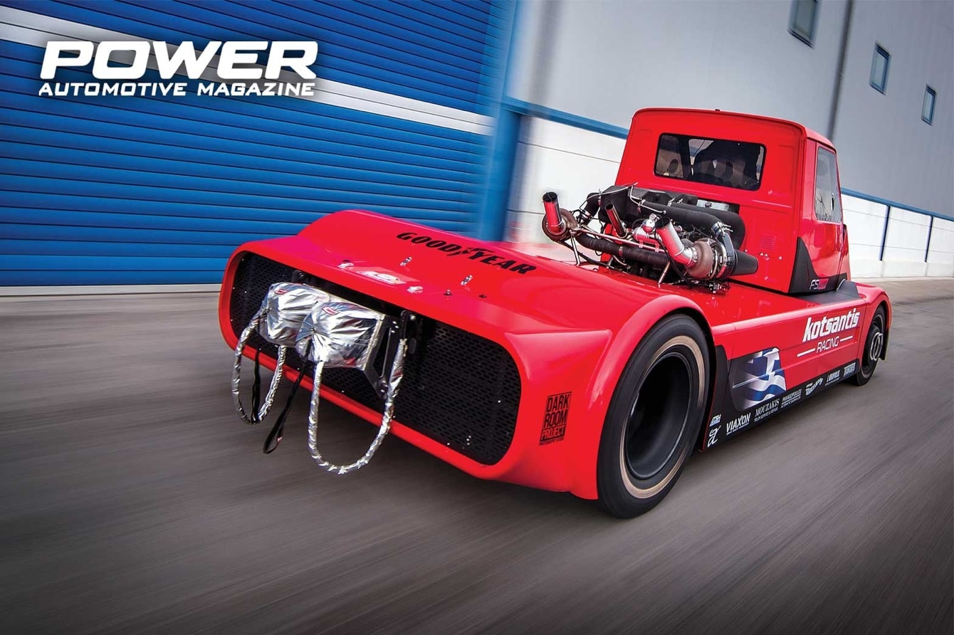 Εσύ, ναι εσύ, με το Cupra των 400Ps, εσύ με το EVO πρώτου σταδίου και εσύ με ό,τι κι αν έχεις και κάνεις ξερό 13άρι στα 400 μέτρα, πώς θα σου φαινόταν να σε περνάει ένα φορτηγό? Όσο παλαβό κι αν σας φαίνεται, ισχύει. Το Volvo FS2000, που βλέπετε εδώ, θέλει 4,77sec για τα 100km/h και 12,8sec με 171,83km/h για τα 400 μέτρα! Ιδιοκτήτες του θηρίου αυτού, αλλά και υπεύθυνοι για την υλοποίησή του, είναι ο πατέρας Χρήστος και ο γιος Παναγιώτης Κωτσαντής, ιδιοκτήτες της Volvo Kotsantis.