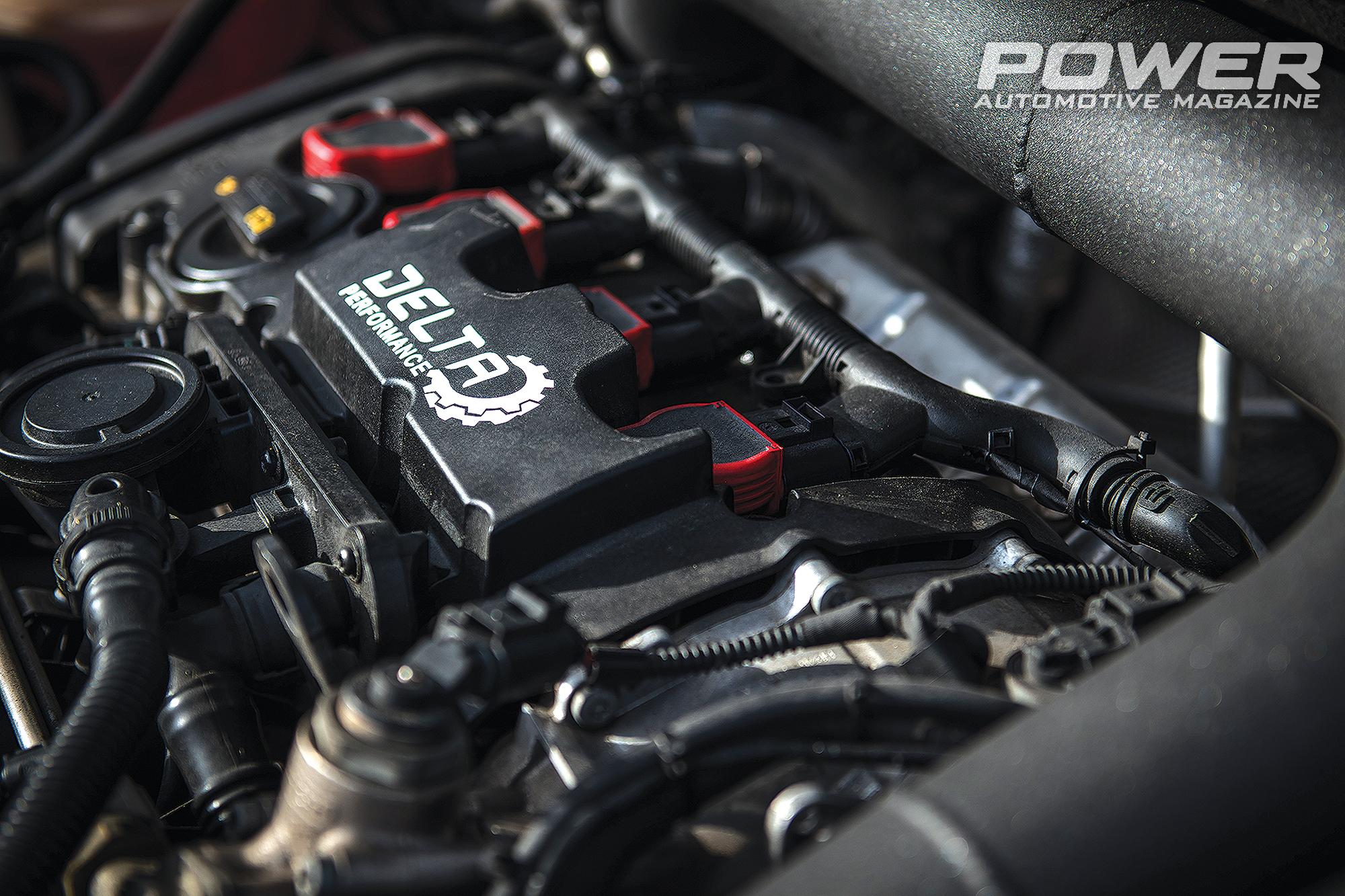 Αρχικά ξεκίνησε με ένα πρόγραμμα από τον Άγγελο Παπαηλία και την AP+POWER, μόνο πρόγραμμα λοιπόν μπαίνει για πρώτη φορά στο Drag Park της Θήβας και γράφει 13,3sec με 162,5km/h. Αφού «γλυκάθηκε» με την εμπειρία, επισκέφτηκε την PPM Exhaust και προχώρησε στην αντικατάσταση της εργοστασιακής εξάτμισης με μία χειροποίητη ολόσωμη με 70mm διατομή, νέο μεγαλύτερο intercooler και εισαγωγή αέρα της Aeroflow με 70άρα σωλήνα εισαγωγής, με το τιμολόγιο να ανέρχεται στα €1.500 για εξάτμιση και intercooler kit + €80 για το φίλτρο. Δεν σταμάτησε εκεί όμως, άλλαξε τα σωθικά της εργοστασιακής αντλίας υψηλής με αυτά από της Autotech με €390 κι ενώ πολλές εταιρείες πουλάνε ολόκληρη αντλία, η Autotech δίνει μόνο τα σωθικά, ενώ αντικατέστησε και το «μπρουτζάκι» της αντλίας με ένα από το RS4 με €60 που αυξάνει ακόμα παραπάνω την πίεση του ψεκασμού καυσίμου. Στη συνέχεια έγινε το remap που χρειαζόταν για να δουλέψουν όλα σωστά, μόνο που αυτή τη φορά ο Άγγελος Παπαηλίας πέρασε και Stage 2 πρόγραμμα στο κιβώτιο ταχυτήτων, ενώ έβαλε και μπαλόνια Hoosier, με διαστάσεις 26x8x15, €650 η δυάδα. Έτσι ακριβώς έτρεξε στο Αγρίνιο και έκανε χρόνο στα 402m 12,8sec. Για να φτάσει στο σημερινό setup, τοποθέτησε το εργοστασιακό K04-064 turbo της Borg Wagner, που του κόστισε €1.000, μπεκ από S3 8P, που κόστισαν €300, water/methanol kit της Snow Performance με το μεγάλο μπεκ, αξίας €500 και τέλος το i-Boost boost controller μαζί με το έξτρα εγκεφαλάκι που προσφέρει η εταιρεία για να ρυθμίζεις και τις μεθανόλες από την οθόνη του Boost Controller, με συνολικό κόστος που φτάνει τα €500. Με αυτό ακριβώς το setup και μπαλόνια της Hoosier, ο Χάρης έγραψε στο Αγρίνιο 11,9sec με 183km/h έξοδο. Για όλη αυτήν την προσπάθεια ήταν πάντα στο πλάι του ο μηχανικός του Δημήτρης Ζάχος μαζί με όλο το team της Delta Performance, ενώ όλα τα ανταλλακτικά τα προμηθεύτηκαν από τη Worx The Car Shop και τον Παύλο Πατέλη. Με αυτό το setup, το Golf απέδωσε 375Ps στις 5.400rpm και 58kgm ροπής στις 4.100rpm, με πολύ safe ρυθμίσεις, όπως μου επανέλαβε πολλές φορές ο Άγγελος Παπαηλίας σε μία συνομιλία που είχαμε. Φυσικά και είναι safe, αφού έχουμε δει 2.0TFSI να περνάνε τα 400Ps όταν εξοπλίζονται με water/meth kit.