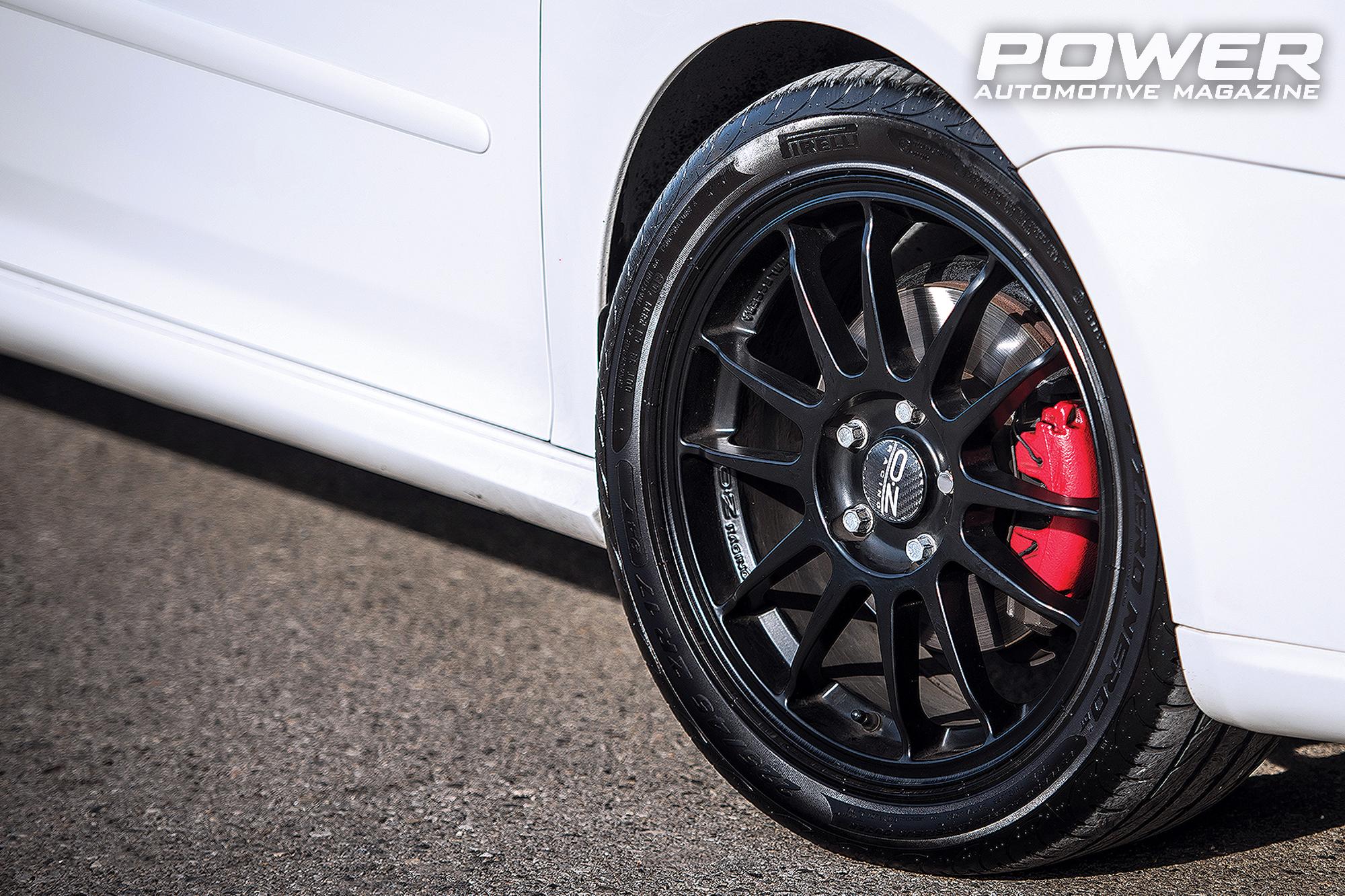 Για τις καθημερινές του μετακινήσεις και δοκιμές, ο Χάρης κυκλοφορεί με Pirelli P Zero Nero σε διάσταση 225/45 με 17in OZ Racing Superleggera που αγοράστηκαν από το Mamas Wheels, όχι και ό,τι πιο extreme σε θέμα απόδοσης τα λάστιχα. Δεν γίνεται να πλησιάσει τους χρόνους της πίστας ειδικά από στάση με δρομίσια λάστιχα, κάτι που φάνηκε από το 14,46sec που κάναμε στην πρώτη προσπάθεια μέτρησης του Golf. Ο Χάρης φλίπαρε με το νούμερο και μας είπε να του δώσουμε 2-3 μέρες περιθώριο να το ετοιμάσει λίγο καλύτερα και να ξαναπατήσουμε. Τη δεύτερη φορά, λοιπόν, ήρθε μόνο με το κάθισμα του συνοδηγού και με semi-slick λάστιχα της Toyo! Πολύ καλύτερο setup για χρόνους! Κάναμε πρώτα τη μέτρηση από στάση, έγραψε 13,81sec με 181,39km/h, με 2,85sec για τα πρώτα 18m και σχεδόν 6sec για το 0-100km/h. Στις roll μετρήσεις με 2η σχέση χρειάστηκε για το 60-160km/h 7,34sec και για το 100-200km/h χρειάστηκε 10,61sec. Φυσικά και δεν μπορεί να πλησιάσει τους χρόνους που κάνει στο dragstrip, αφού εκεί πέφτει επιπλέον ελάφρωμα και μην ξεχνάτε ότι έχουμε και κόλλα και Drag λάστιχα!