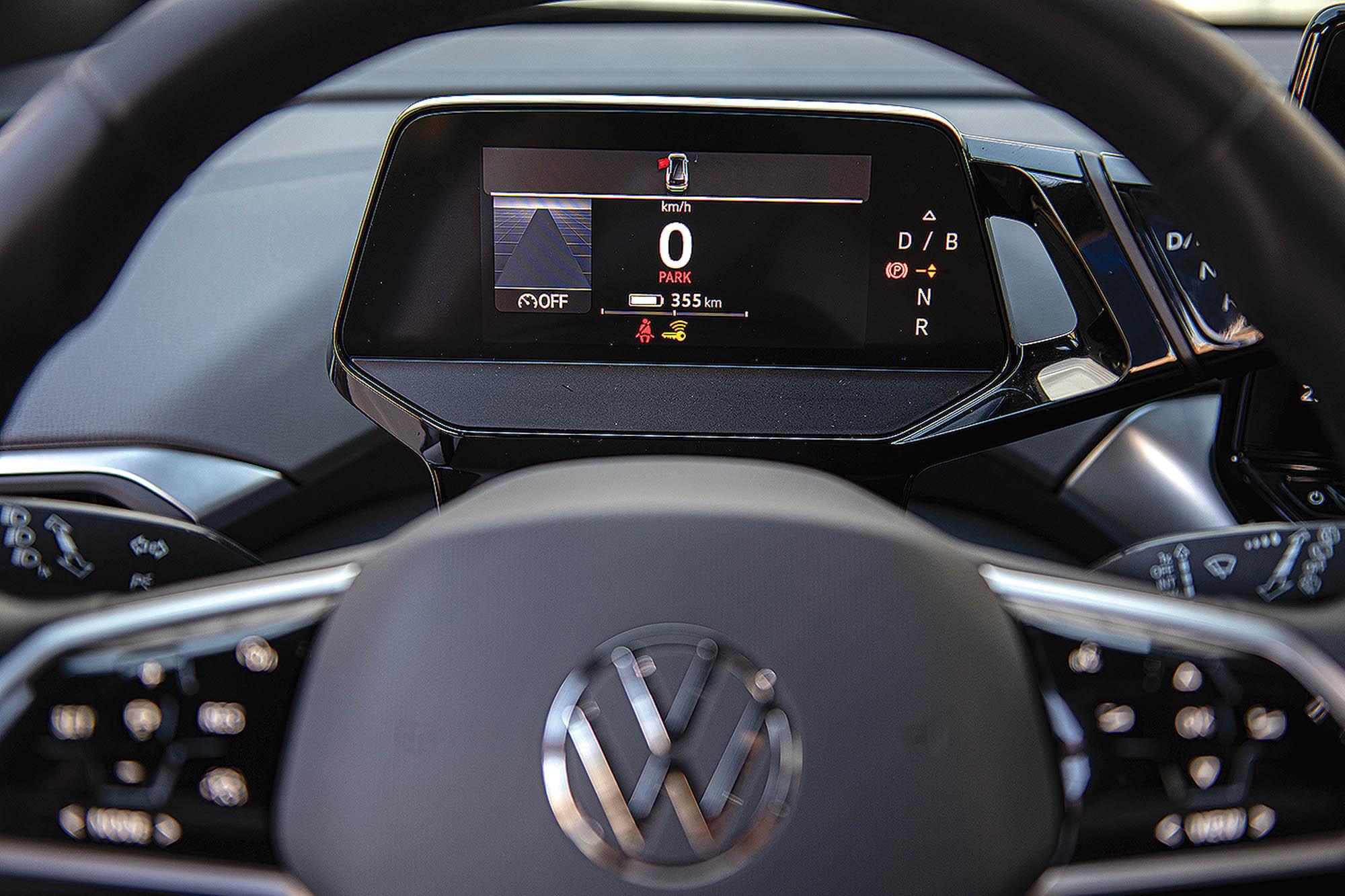 Ο μικρός ψηφιακός πίνακας οργάνων των 5,3in, αν ήταν απλώς ικανοποιητικός στο ID.3, στην περίπτωση του μεγαλύτερου ID.4, ειδικά δίπλα στην 12άρα κεντρική οθόνη, δεν ενθουσιάζει σε μέγεθος και πληροφορίες. Διαθέτει όμως πολύ καλό head-up display, ψηφιακό οδηγό που ενεργοποιείται λέγοντας «hello ID», το App-Connect, μέσω του οποίου η σύνδεση με smartphone γίνεται μέσα σε μερικά δευτερόλεπτα και το καινοτόμο σύστημα ID. Light. Πρόκειται για μία λεπτή φωτεινή μπάρα κάτω από παρμπρίζ, η οποία χρησιμοποιείται για να προειδοποιήσει τον οδηγό για τη διατήρηση της λωρίδας κυκλοφορίας λίγο πριν ενεργοποιηθεί το σύστημα έκτακτου φρεναρίσματος ή ακόμα και να τον ενημερώσει σε περίπτωση εισερχόμενης κλήσης.
